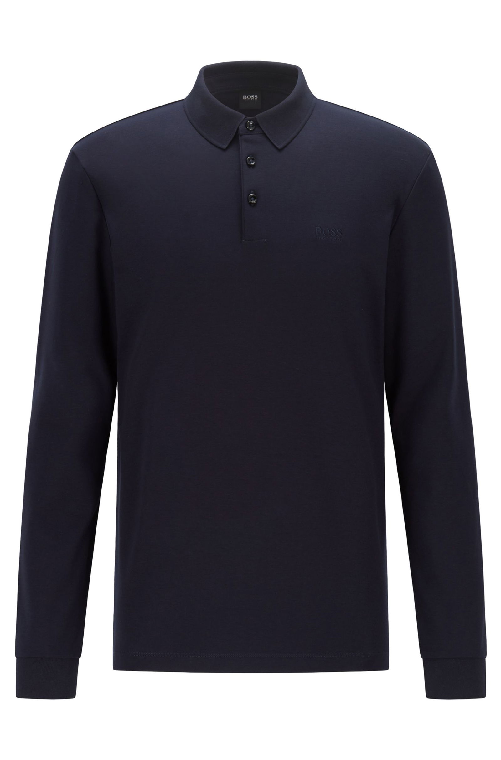 Zeitloses BOSS Poloshirt aus besonders softer Baumwolle. Das gerade geschnittene Herren-Polo mit langen Ärmeln besitzt einen flachgestrickten Kragen mit Drei-Knopf-Leiste und ist auf der Brust mit einer Logo-Stickerei versehen. Tragen Sie den leicht zu kombinierenden Style unter einer Sportjacke für einen legeren Freizeit-Look.