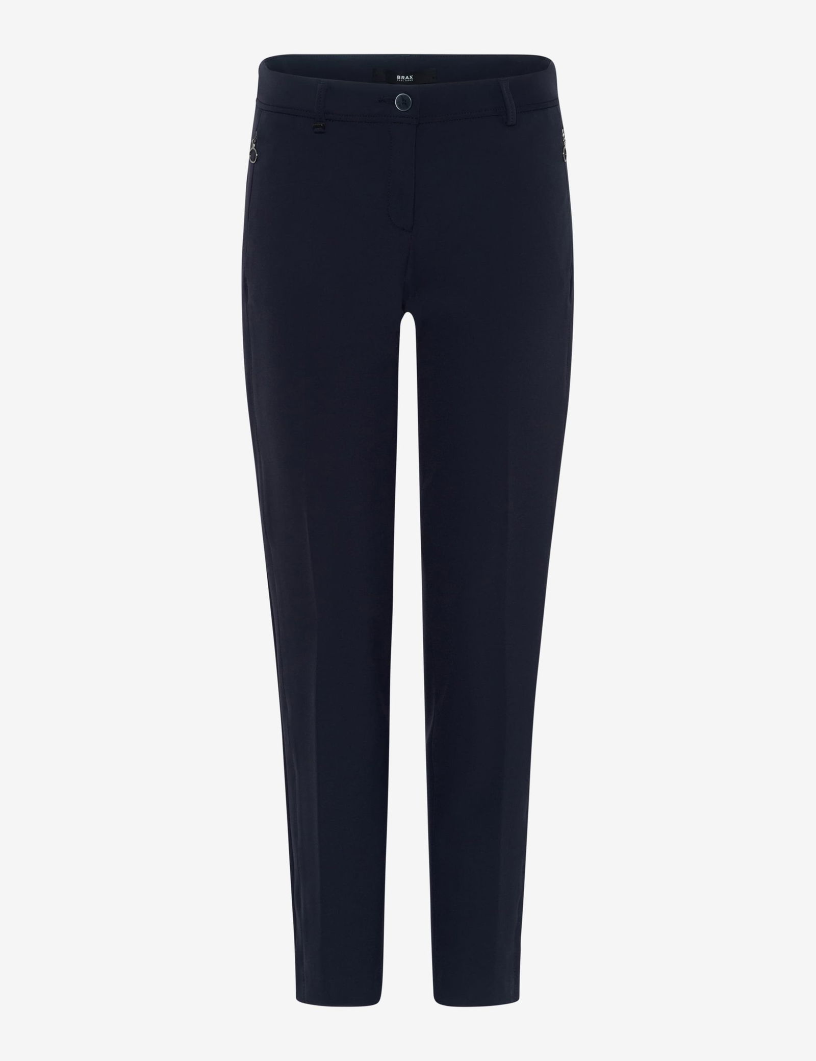 Die Brax Hose "Maron S" ist ein stilvolles Basic für Damen, das mit seiner zeitlosen Eleganz und exzellentem Tragekomfort überzeugt. Als klassische 7/8-Chino im Regular Fit mit konischem Beinverlauf und schmaler Fußweite bietet sie eine feminine Silhouette und eine komfortable Passform mit niedriger Leibhöhe.
