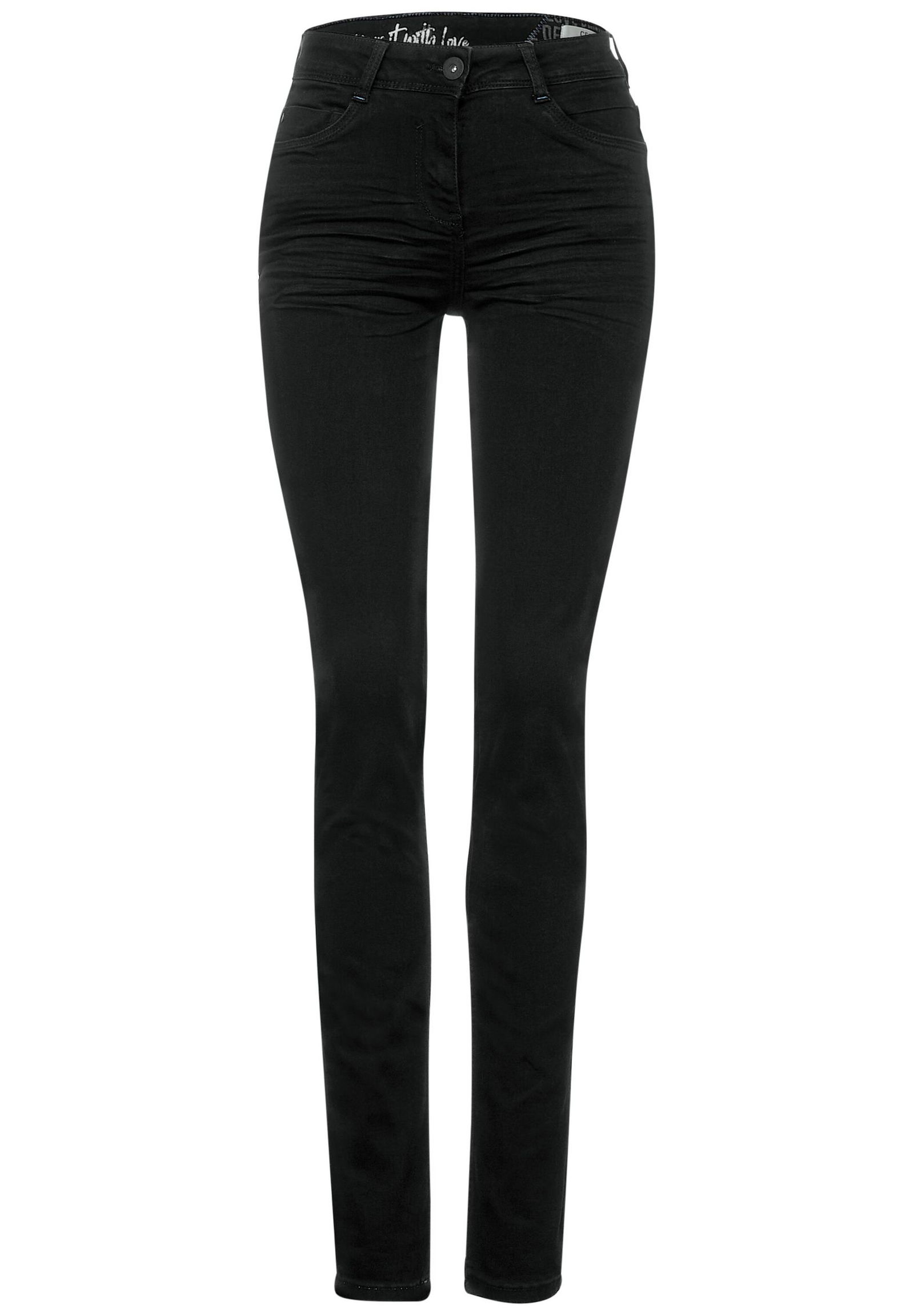 Denim Power! Die Slim Fit Damenjeans im Style Toronto von CECIL verbreitet gute Laune. In dunkler Waschung ist sie ein absoluter Klassiker, der in keinem Kleiderschrank fehlen darf. High Waist und Slim Legs formen eine feminine Silhouette. Der Reißverschluss mit Knopf verleiht dem klassischen Denim Style ein modisches Upgrade.