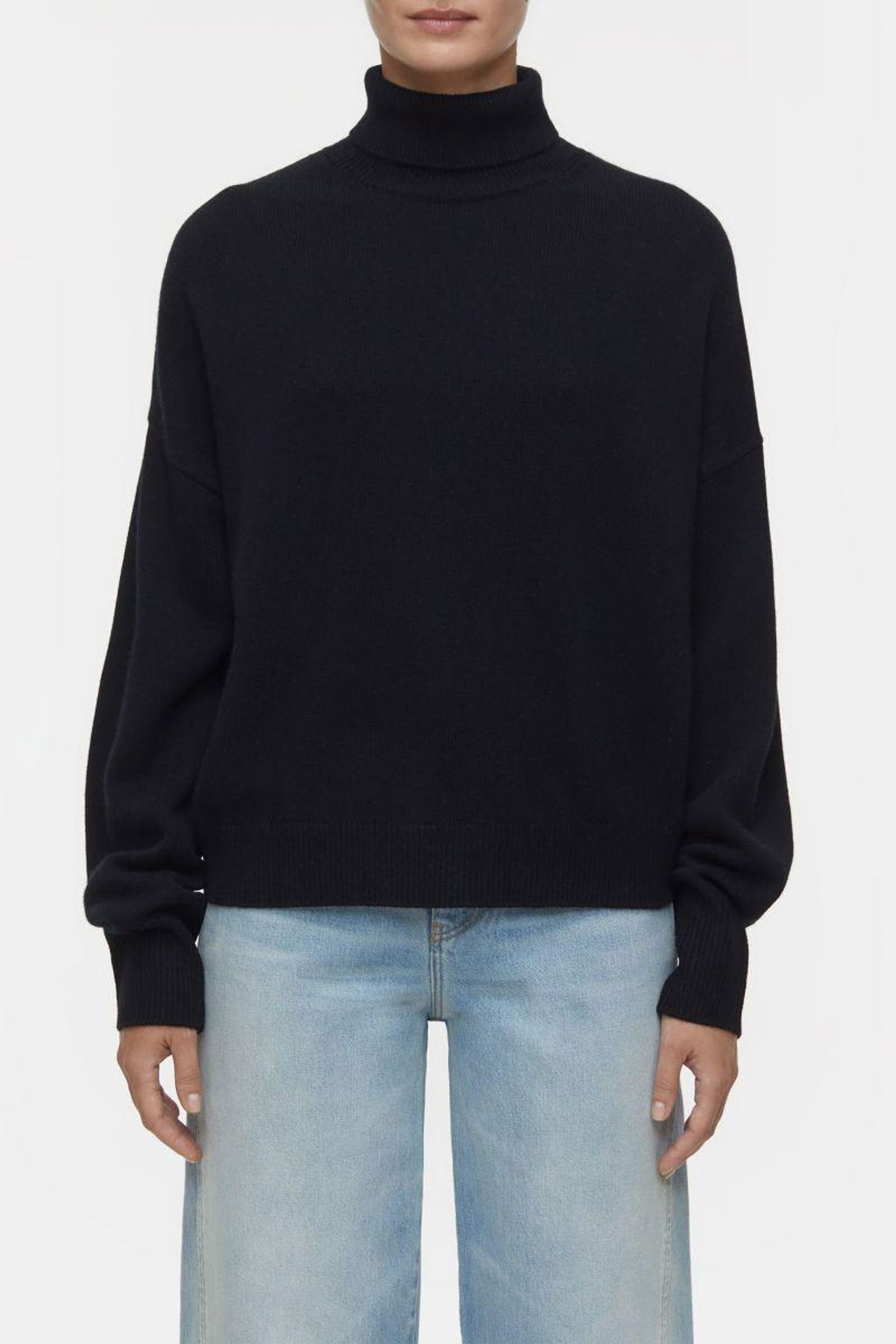 Rollkragenpullover + Reguläre Passform + Aus weichem Merino-Kaschmir-Mix + Überschnittene Schultern + Mittige Naht auf der Rückseite + Gerippte Bündchen + Länge: ca. 58 cm (Größe S) + Model (ca. 1,78 m) trägt Größe S + Herstellungsland: China + 90% Wolle, 10% Kaschmir + Handwäsche oder professionelle Reinigung