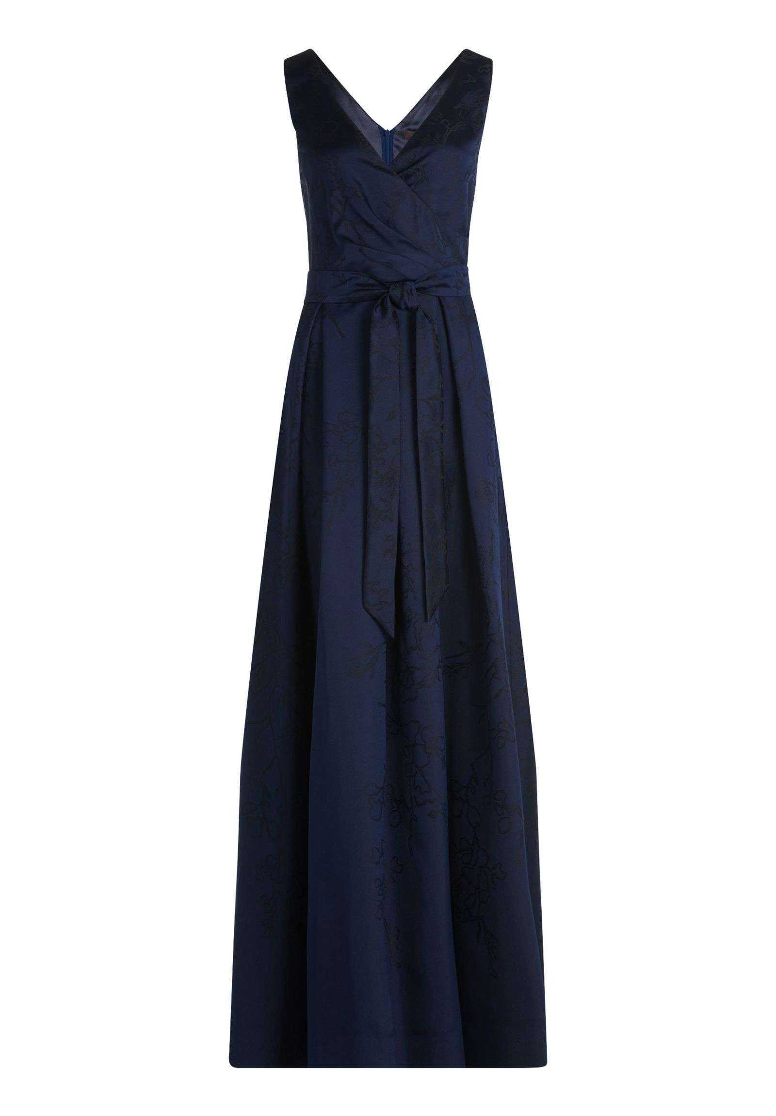 * Passform: Ausgestellt * Gesamtlänge: 157 cm * Länge ab Taille: 115 cm * Ärmellänge: Ohne Arm * Ausschnittform: V-Ausschnitt * Längeninfo: Maxi * Tasche: Nahttaschen * Verschluss: Reißverschluss * Muster: Floral / Blumen * Futter: 97% Polyester, 3% Elasthan * Gürtel: 58% Acetat, 42% Polyester