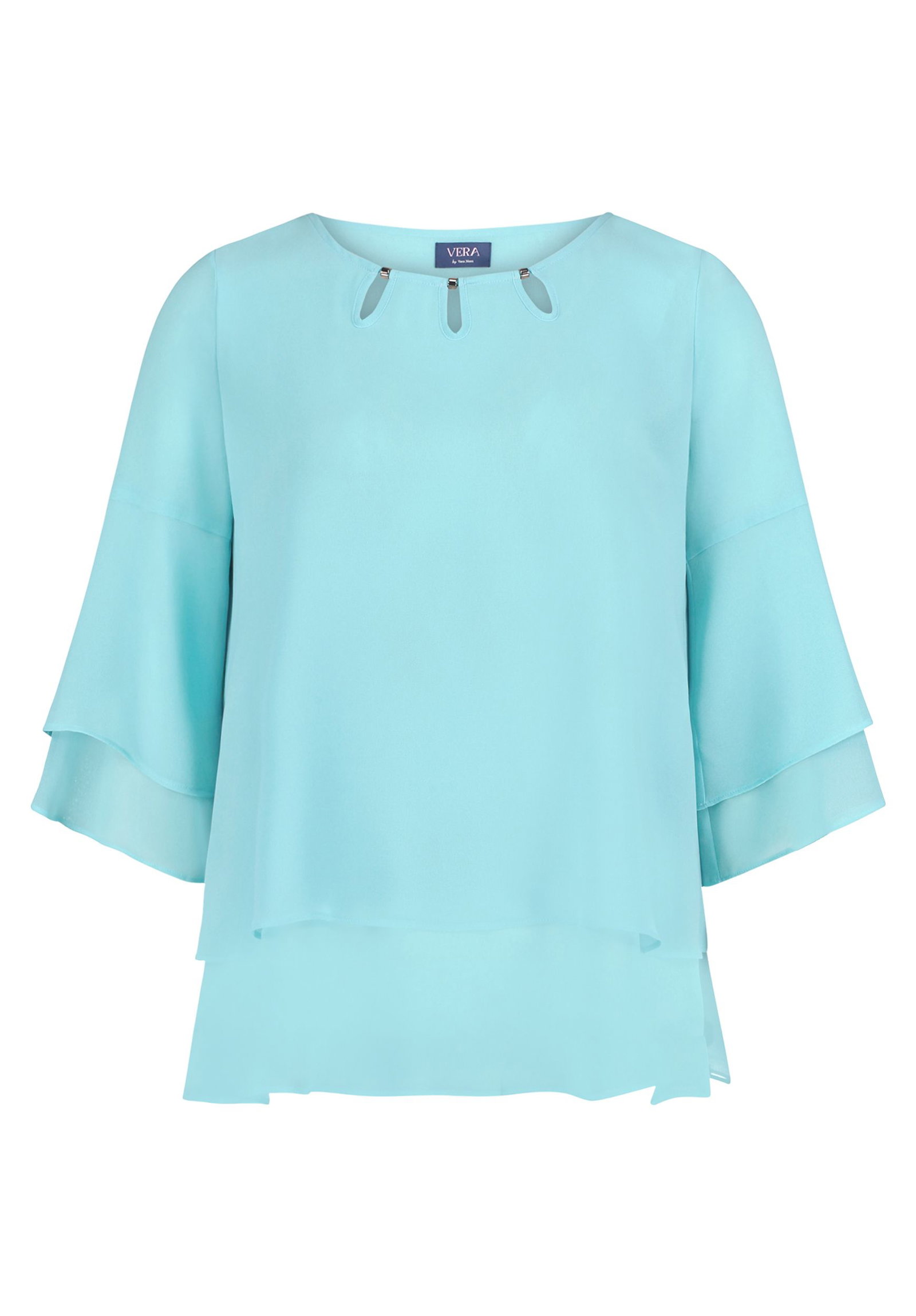 * Passform: Loose Fit * Gesamtlänge: 63 cm * Länge ab Taille: 21 cm * Ärmellänge: 3/4 Arm * Ausschnittform: Rundhals-Ausschnitt * Materialart: Chiffon * Verschluss: Ohne Verschluss * Muster: Uni * Futter: 100% Polyester * Besatz: 95% Polyester, 5% Elasthan