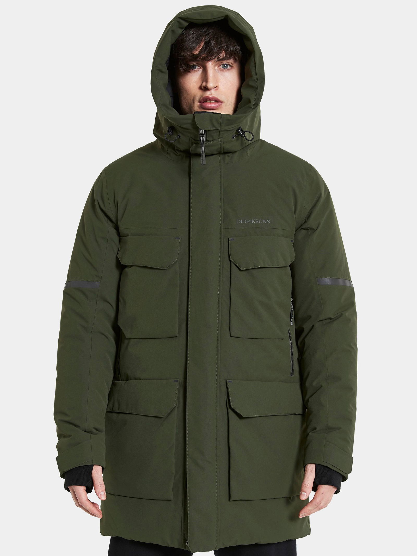 Leisure lifestyle padded parka, classic and heavy Didriksons parka, Soft polyester weave with dull surface (cotton touch) Colour: 060 Black, 999 Dk Night blue, 300 Deep Green - Solution dyed, Regular fit / Straight shape, A lot of wide front pockets, two w zippers, reflective panel at hood