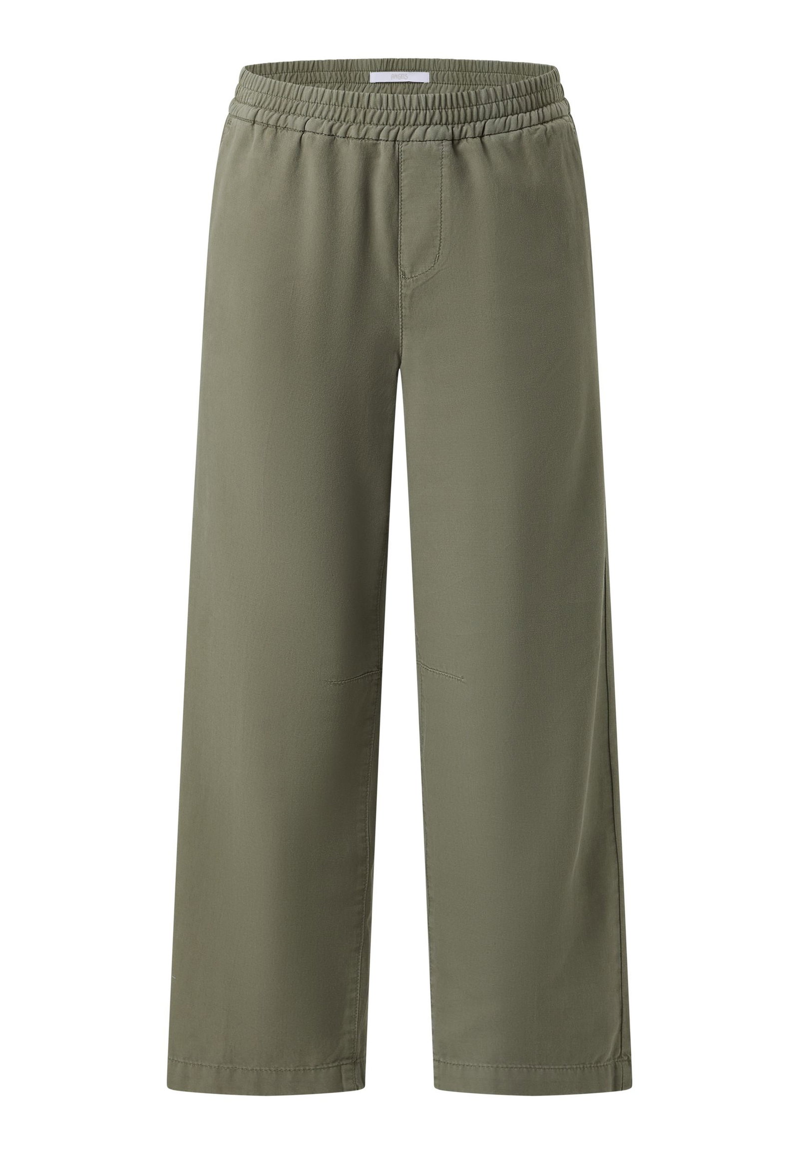 Diese Cropped-Hose vereint entspannte Lässigkeit mit durchdachten Details. Der elastische Bund mit Tunnelzug, Bindeband und Ösen sorgt für Komfort und eine flexible Passform. Aufgesetzte Fronttaschen mit diagonaler Nahtführung und doppelter Steppung setzen markante Akzente, während paspelierte Gesäßtaschen das Design abrunden. Der fixierte Umschlag am Saum unterstreicht die moderne, verkürzte Silhouette. Gefertigt aus einem hochwertigen Leinen-Baumwoll-Mix überzeugt die Hose mit natürlicher Struktur und angenehmem Tragegefühl. Länge ca. 71 cm (gekrempelt).