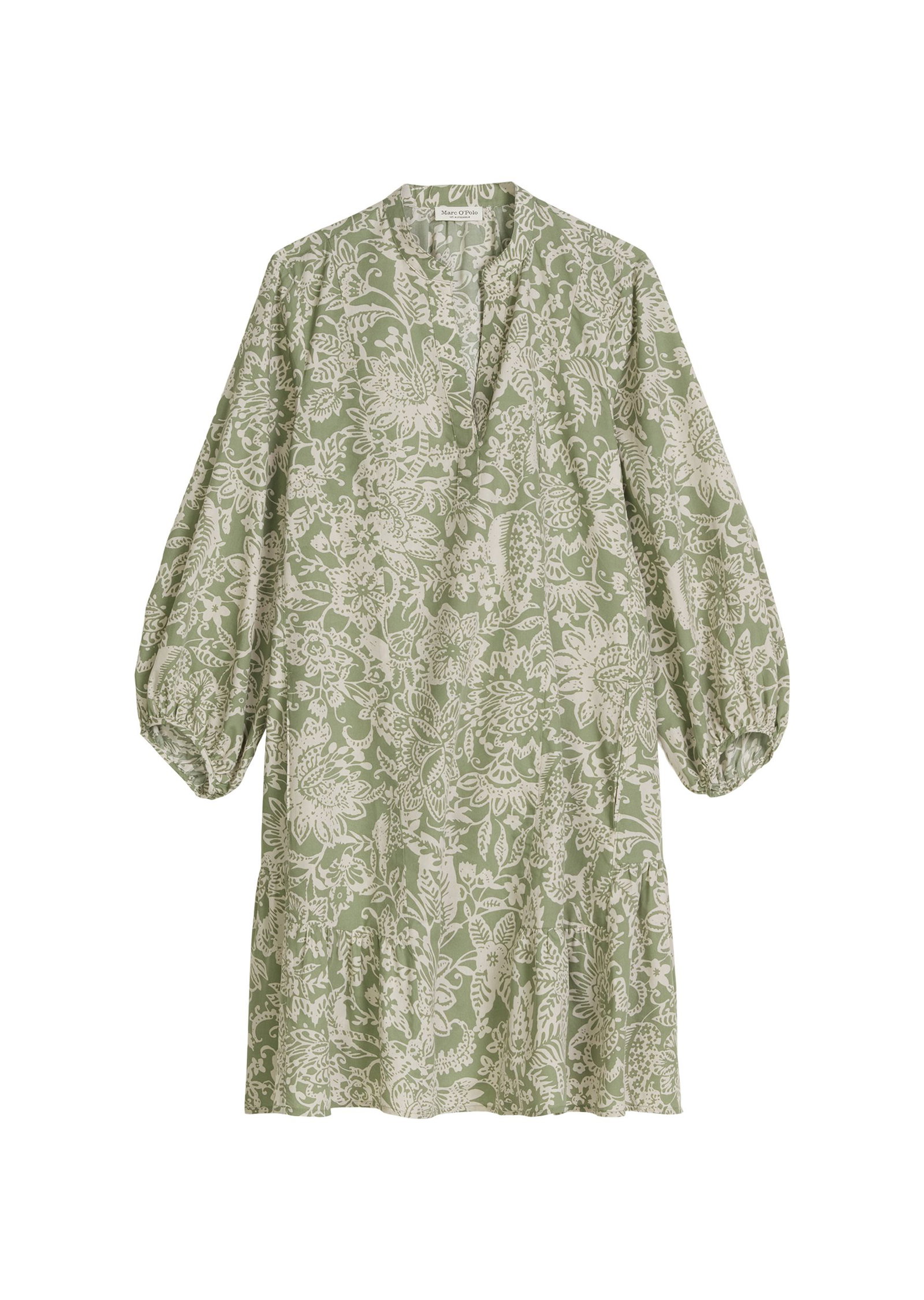 Für mehr Romantik im Alltag setzen wir jetzt auf Muster und Volumenärmel! Dieses feminine, knielange Kleid hat mehr als nur ein besonderes Detail. Die Ärmel des lässigen Kleids sind weit geschnitten und am Abschluss stark gerafft. Der leichte, gewaschene Popeline-Stoff aus einem Bio-Baumwolle-Viskose-Mix kommt mit einem auffälligen Allover-Print in floralem Dessin und hat einen schönen Fall. Das Modell hat einen Stehkragen, einen geschlitzten Ausschnitt mit Blendenverarbeitung, praktische Eingrifftaschen und eine breit angesetzte Saumrüsche. Das praktische Schlupfmodell ist nicht gefüttert.