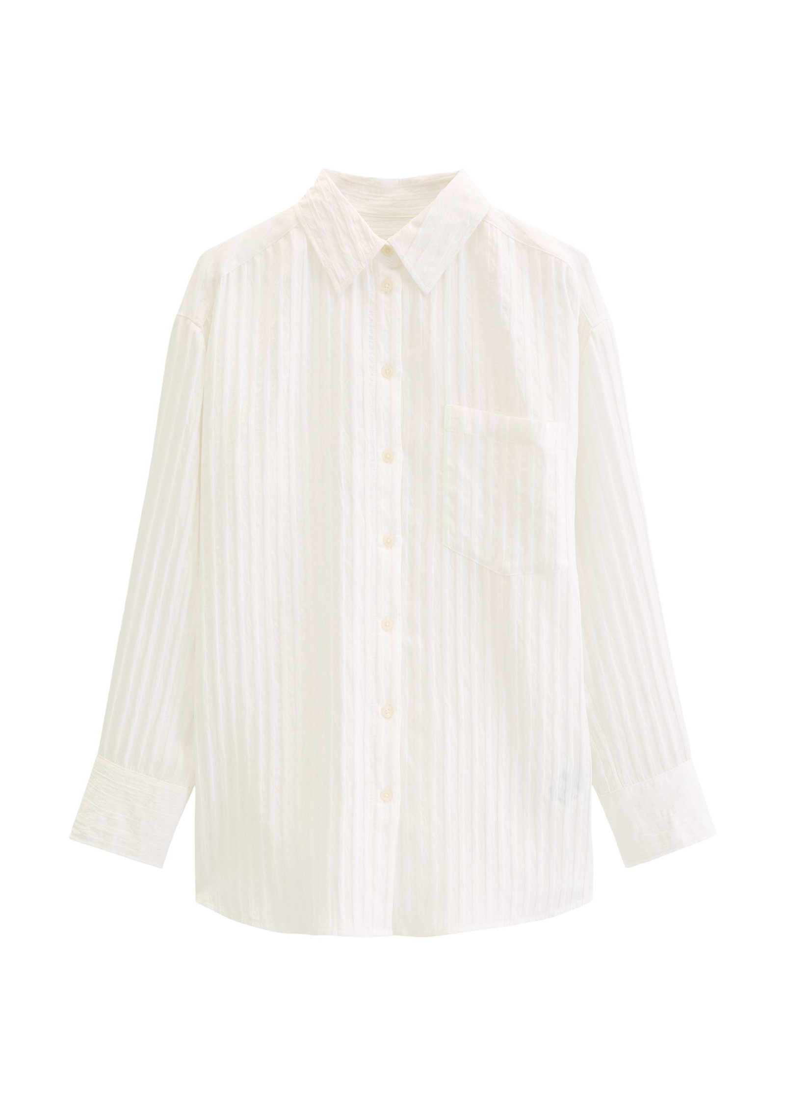 Sie sieht aus, als hätte man sie dem Partner aus dem Schrank geklaut: die Boyfriend-Bluse. Dank des lässigen Schnitts und des zeitlosen, strukturierten Streifen-Dessins erinnert sie an ein Herrenhemd und wird schnell zum Styling-Allrounder und absoluten Lieblingsstück. Das Modell ist aus hochwertiger, tonaler Modal-Mix-Qualität mit softem Finish gefertigt. Sie hat einen lockeren O-Schnitt, einen Kentkragen, überschnittene Schultern, eine aufgesetzte Brusttasche, klassische Blusenärmel mit Manschettenabschluss, eine Rückenpasse mit seitlichen Falten und eine lässig gerundete und auf der Rückseite leicht verlängerte Saumlinie.