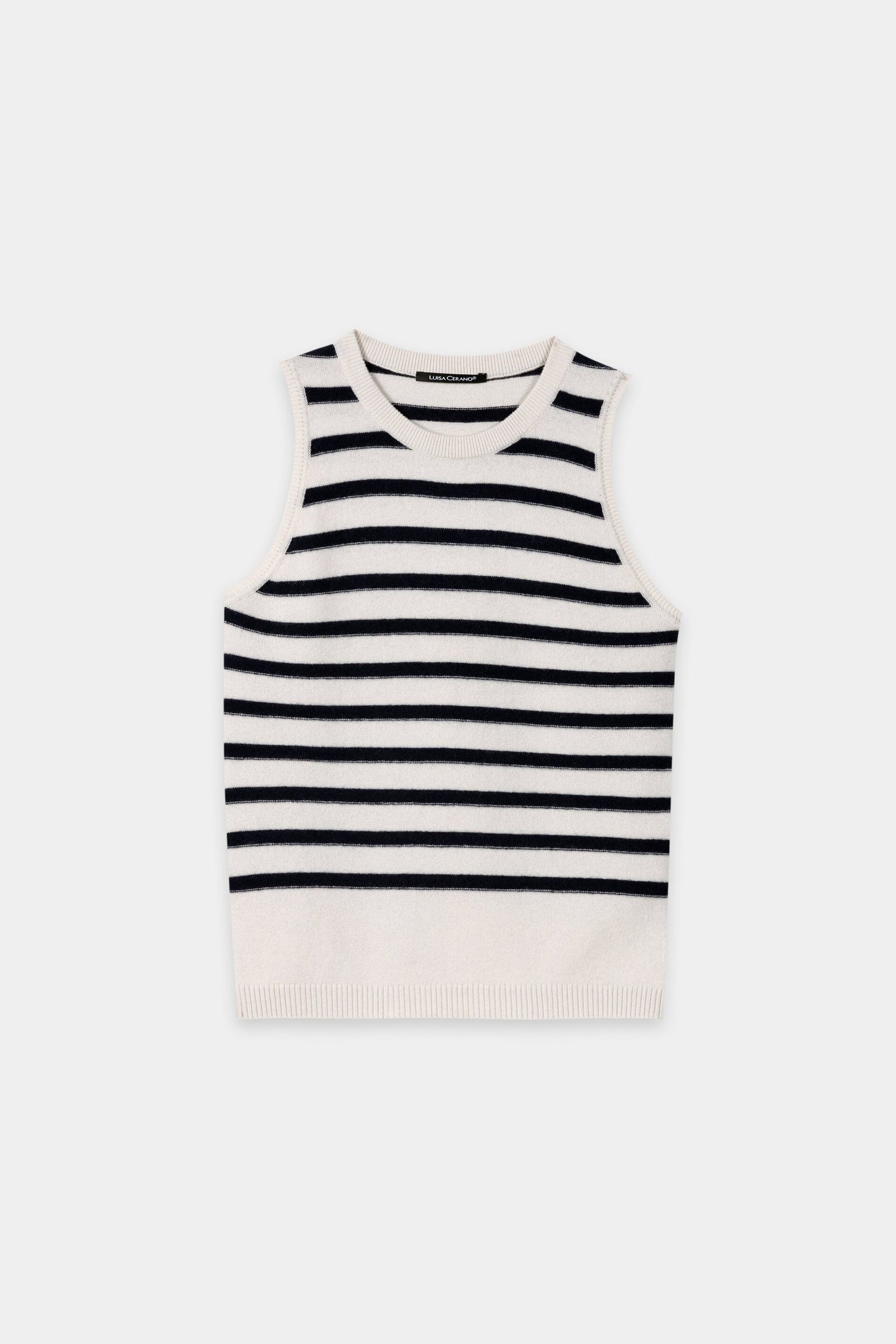 Gestreiftes Top aus edler Kaschmir-Mischung mit Rundhalsausschnitt und American Shoulder. Die Abschlüsse haben gerippte Strickbündchen. Unser Model ist 178 cm groß und trägt Größe 36. Obermaterial: 80% Wolle, 20% Kaschmir Handwäsche