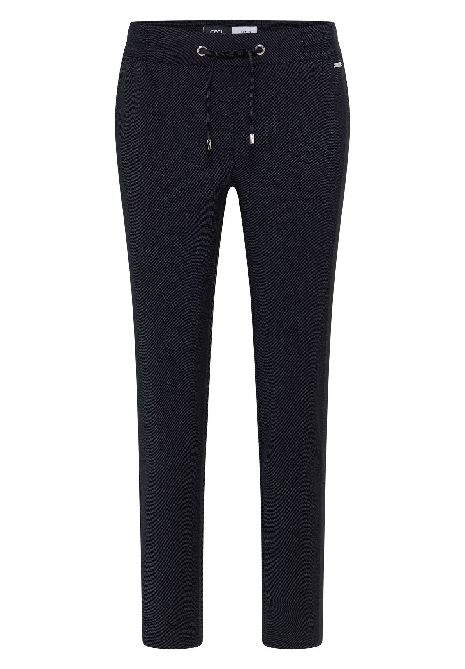 Die Hose im Style Tracey von CECIL für Damen bringt mit Two-Tone Look, Mid Waist und Slim Legs frischen Wind in deinen Kleiderschrank. Der elastische Bund mit Tunnelzug sorgt für angenehmen Sitz – perfekt für lässige Outfits mit Stil. Casual Fit Hose Mid Waist und Slim Legs Seitliche Taschen Elastischer Bund mit Tunnelzug Materialmix mit Stretchanteil Material: 41% Polyamid, 29% Viskose, 22% Polyester, 8% Elasthan