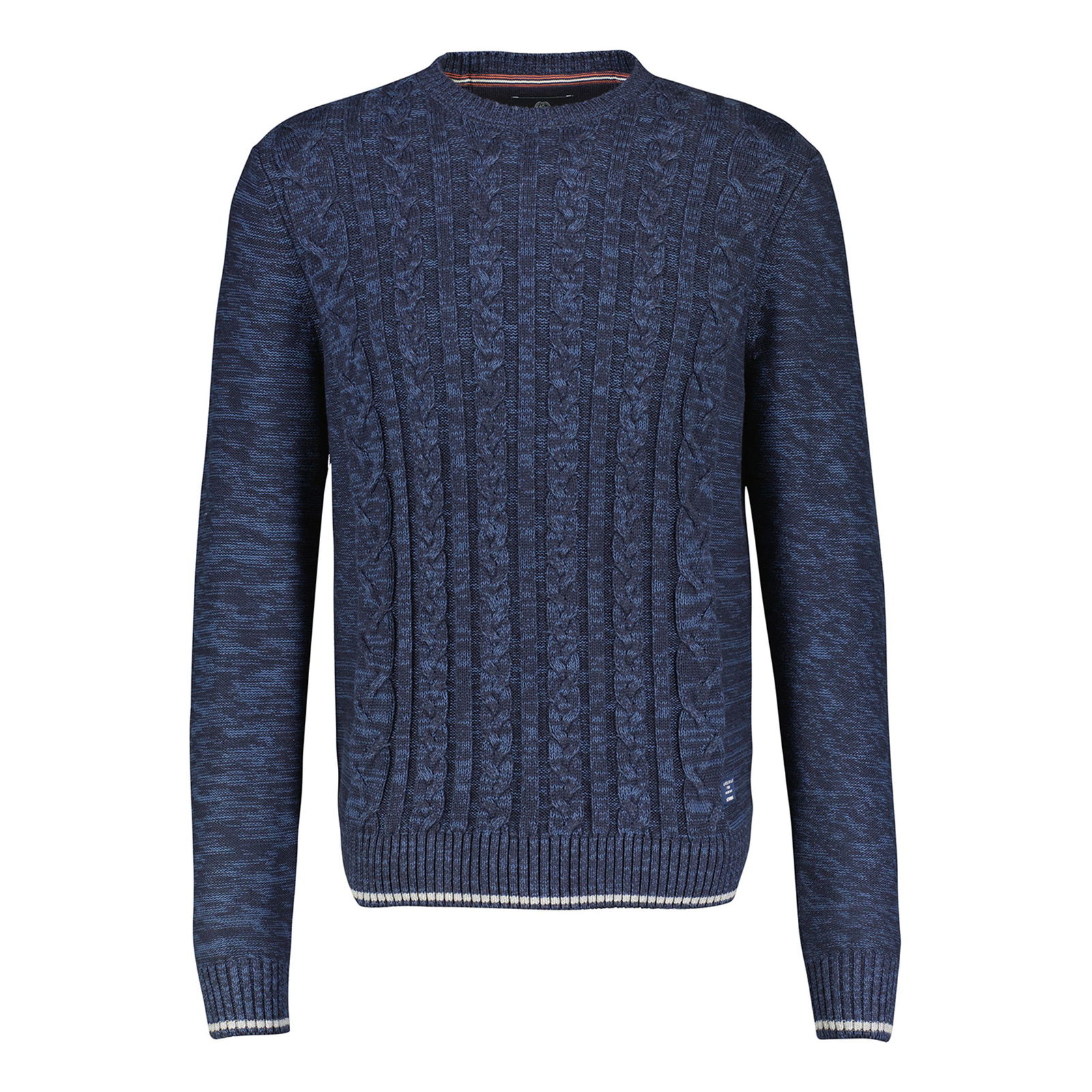 Der LERROS Strickpullover zeichnet sich durch seine breite Rippe mit Zopfmuster, den Rundhalsausschnitt, sowie die bequeme Passform aus. Die sportive Optik wird zudem durch Kontraststreifen und die Melangeoptik erzielt.