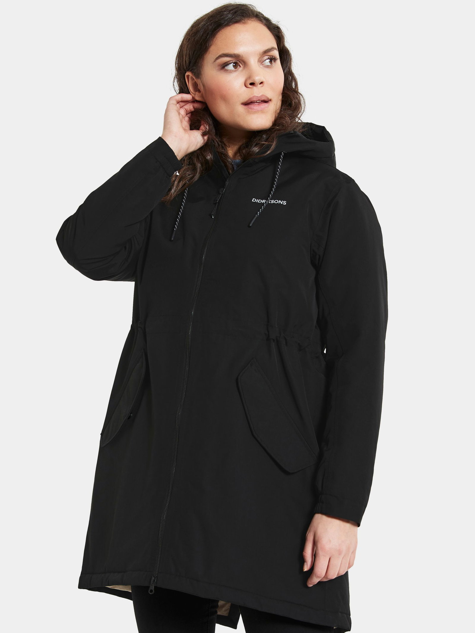 Everyday parka with logo lining. Heavy nylon taslan fabric, Relaxed fit / A-shape, Reflective details: = reflective prints at front chest and back shoulder, heavy reflective drawstring at hood
