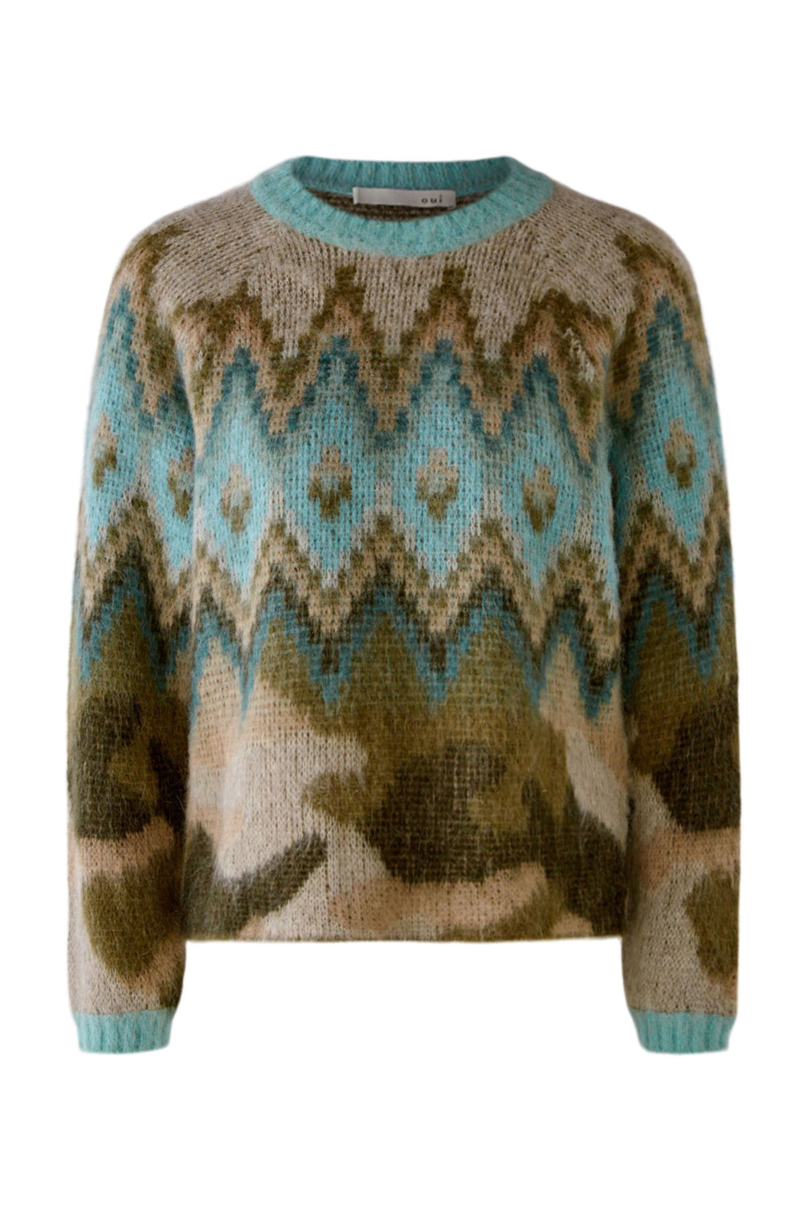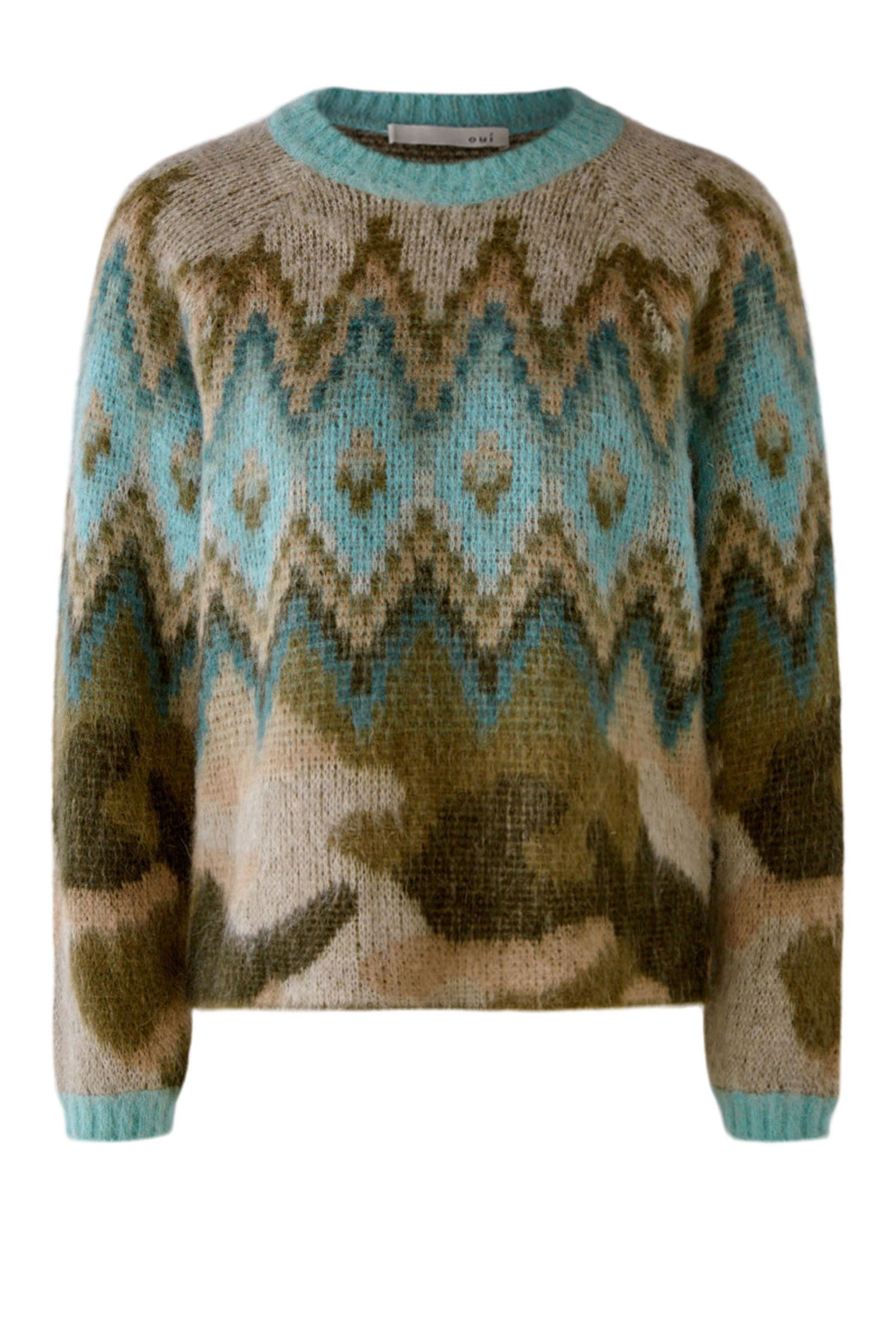 Kuschelige Alpaka-Mischung in gebrushter Optik, im allover Jacquard gestrickt