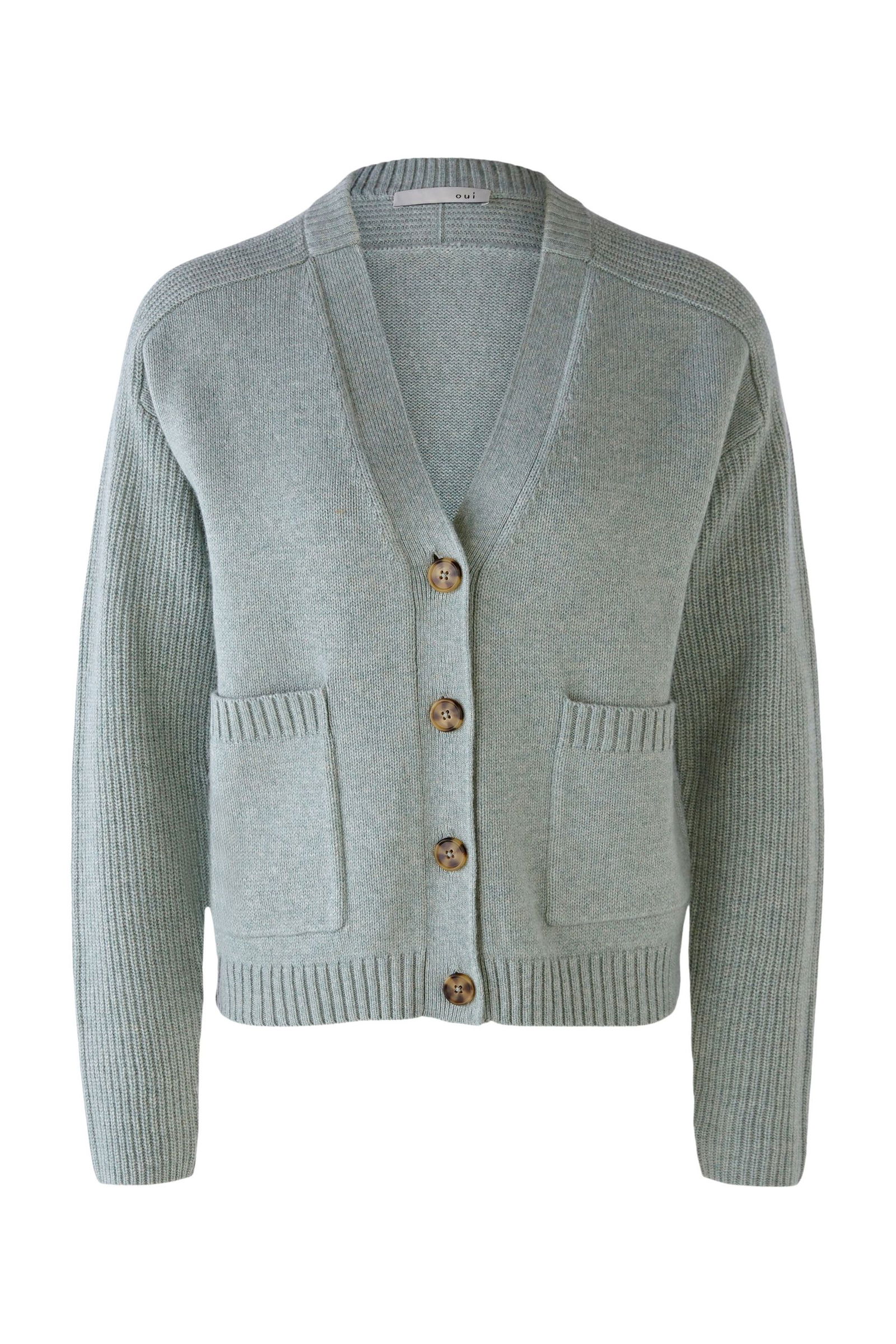 Aufgesetzte Taschen und Body in glatt rechts gestrickt