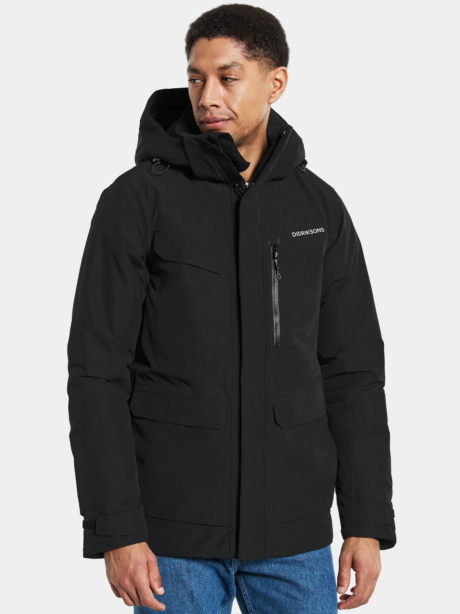 Leisure lifestyle parka with detachable hood, light padded, to wear in the city, countryside or when you are active., Soft polyester weave with dull surface (cotton touch) Colour: 060 Black, 999 Dk Night blue, 300 Deep Green - Solution dyed, Regular fit / Straight shape, Reflective panel at hood. Detachable hood. A lot of wide front pockets, one with WR-zippers