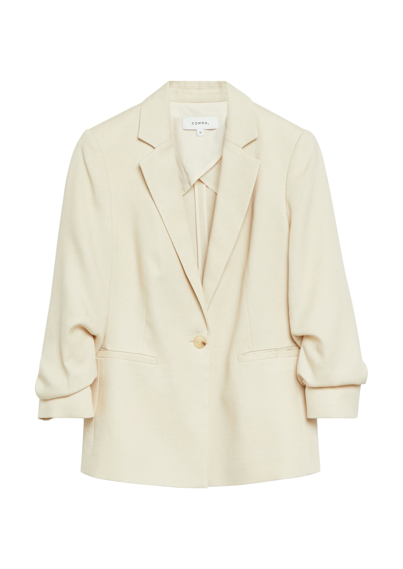 Strukturierter Ein-Knopf-Blazer mit Drapé-Ärmeln in 3/4-Länge