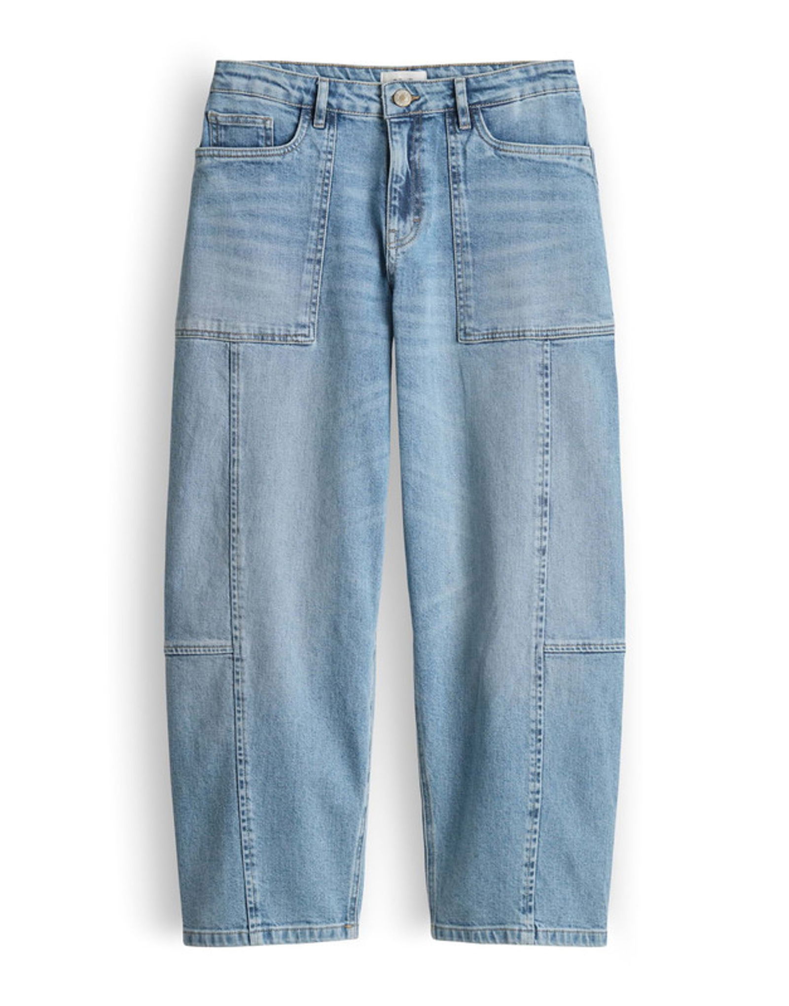 sehr weiter Beinverlauf, Hosenbein Innenlänge in jeder Größe: L32 ca. 81 cm, Model Größe 177 cm trägt Größe 36 L32, Denim, fester Griff, leicht elastischer Stoff, authentische Waschung, 5-Pocket-Design, elastischer Gummibund, verdeckter Zip-Fly, Crinkle-Effekte, leichte Used-Effekte