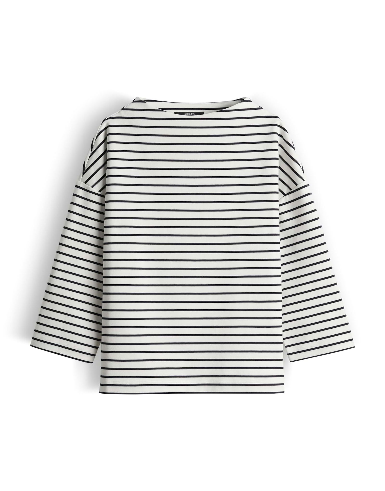 weite Passform, schmal zulaufend, langer Fledermausärmel, U-Boot-Ausschnitt, Rückenlänge ca. 55 cm bei Größe 36, Model Größe 177 cm trägt Größe 36, Sweatware, Rippstruktur, weicher Griff, elastischer Stoff, separate Bündchen am Ärmelsaum