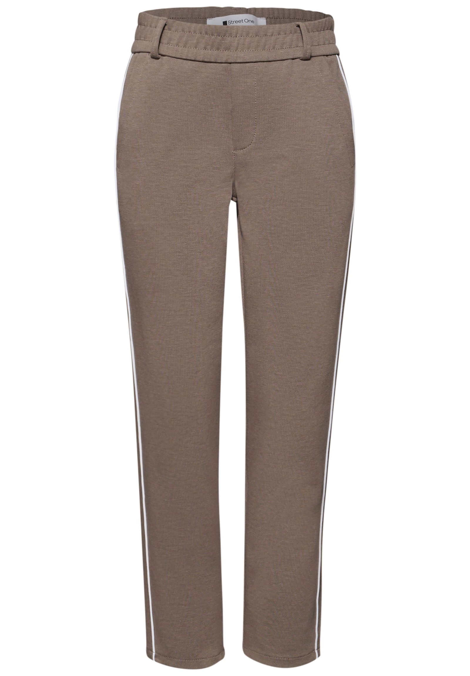 Im Style Bonny zeigt sich diese Stoffhose von Street One für Damen modern und sportiv zugleich. Tapedetails an den Beinen, ein elastischer Bund und praktische Seitentaschen runden den Look ab. Der strukturierte Piqué-Stoff mit Stretchanteil sorgt für Tragekomfort – perfekt für entspannte Freizeit-Outfits. Stoffhose Loose Fit Slim Legs Mid Waist Modisch und bequem Material: 50% Polyester, 46% Baumwolle, 4% Elasthan