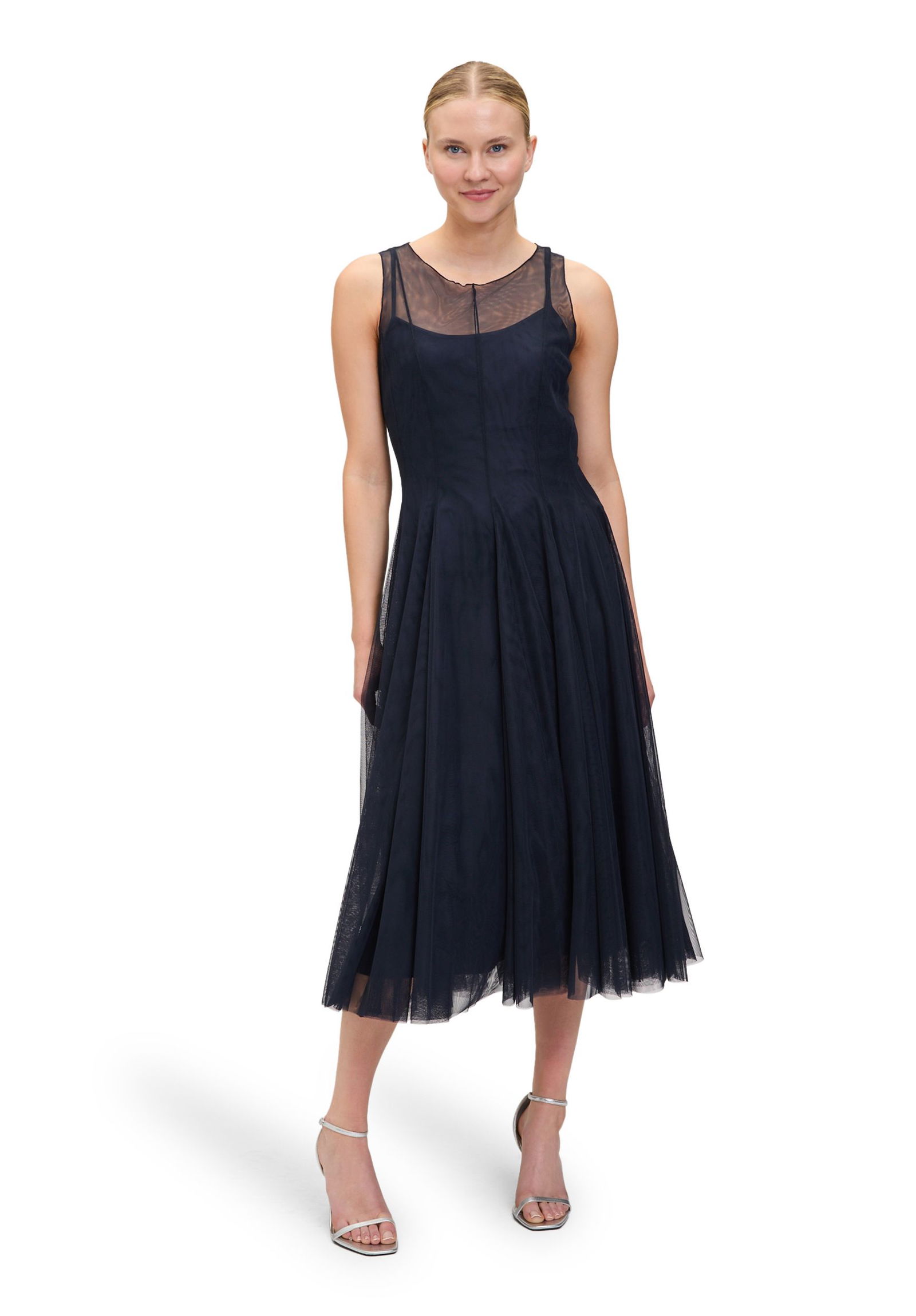 * Passform: Schwingend * Gesamtlänge: 122 cm * Länge ab Taille: 80 cm * Ärmellänge: Ohne Arm * Ausschnittform: Rundhals-Ausschnitt * Längeninfo: Midi * Materialart: Tüll * Trägerart: Verstellbare Träger * Verschluss: Reißverschluss * Muster: Uni * Futter: 100% Polyester
