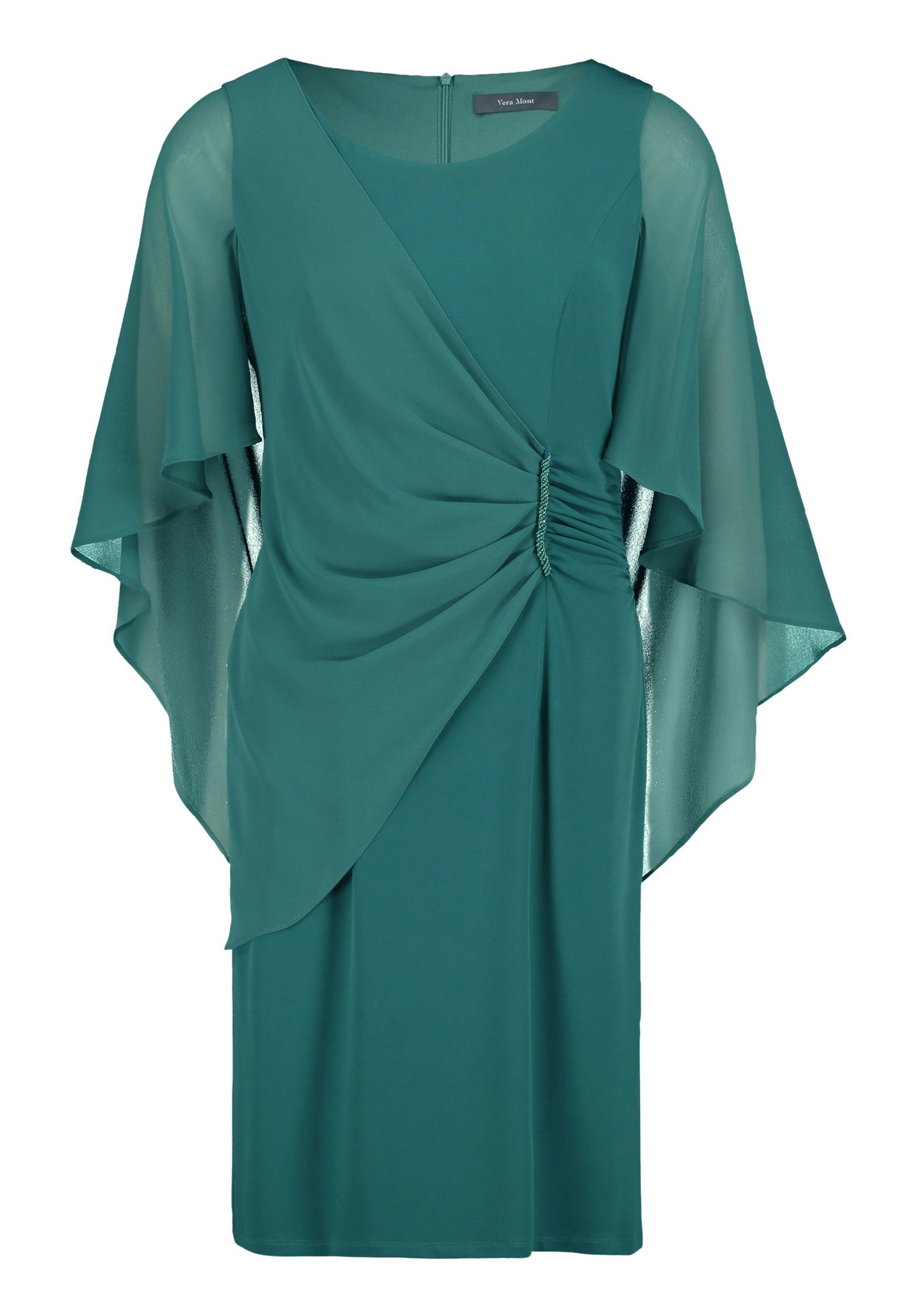 Frisch, elegant und ideal für festliche Anlässe im Frühling und Sommer: Dieses Frank Lyman Kleid (Modell 258276) begeistert mit einem strahlenden Aquaton und raffinierter Schnittführung. Das figurbetonte Etuikleid mit dezentem Schimmer wird durch ein luftig fallendes Chiffon-Overlay mit Glitzerkante veredelt, das locker über die Schultern gelegt ist und einen stilvollen Cape-Look erzeugt. Seitliche Cut-Outs an den Armen sorgen für einen modernen Akzent und machen das Kleid zu einem echten Hingucker. Ob zur Hochzeit, Taufe, zum Jubiläum oder Sommerempfang dieses Modell vereint Komfort mit festlicher Eleganz und zaubert eine fließende Silhouette.