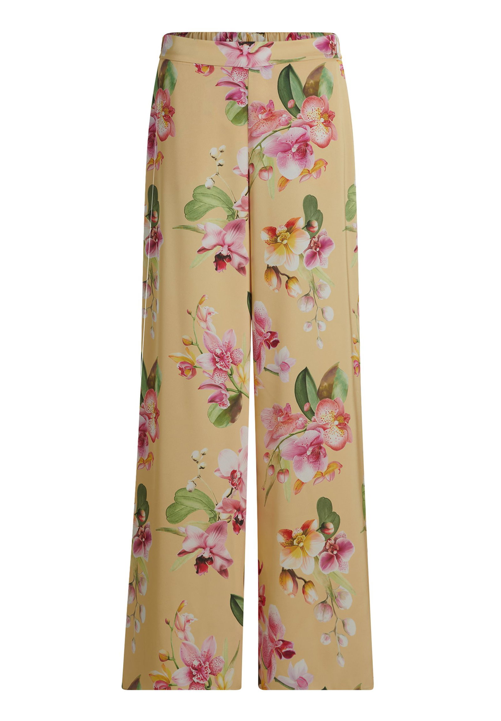 * Passform: Schwingend * Schrittlänge: 84 cm * Fussweite: 80 cm * Längeninfo: Lang * Leibhöhe: High Waist * Materialart: Satin * Tasche: Nahttaschen * Verschluss: Gummizug * Muster: Floral / Blumen * Futter: 100% Polyester