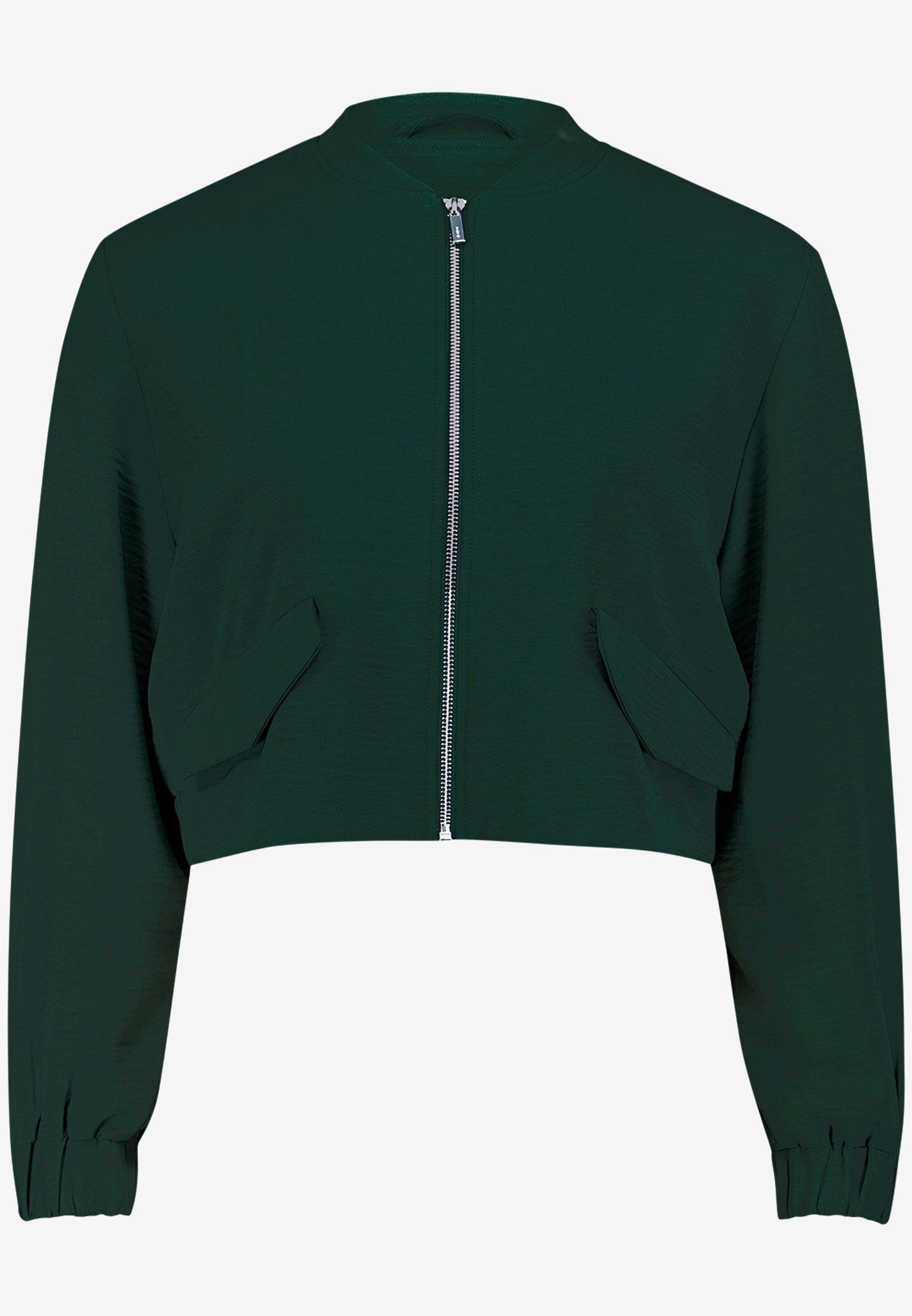 Scuba Qualität: neoprenähnliche Oberseite und jerseyähnliche Unterseite mit supersoftem Griff Boxy geschnitten, verkürzte Länge Klassischer Blousonkragen Durchgehende Knopfleiste mit tonigen Druckknöpfen Seitliche Eingrifftaschen * Länge bei Größe 36: 52cm