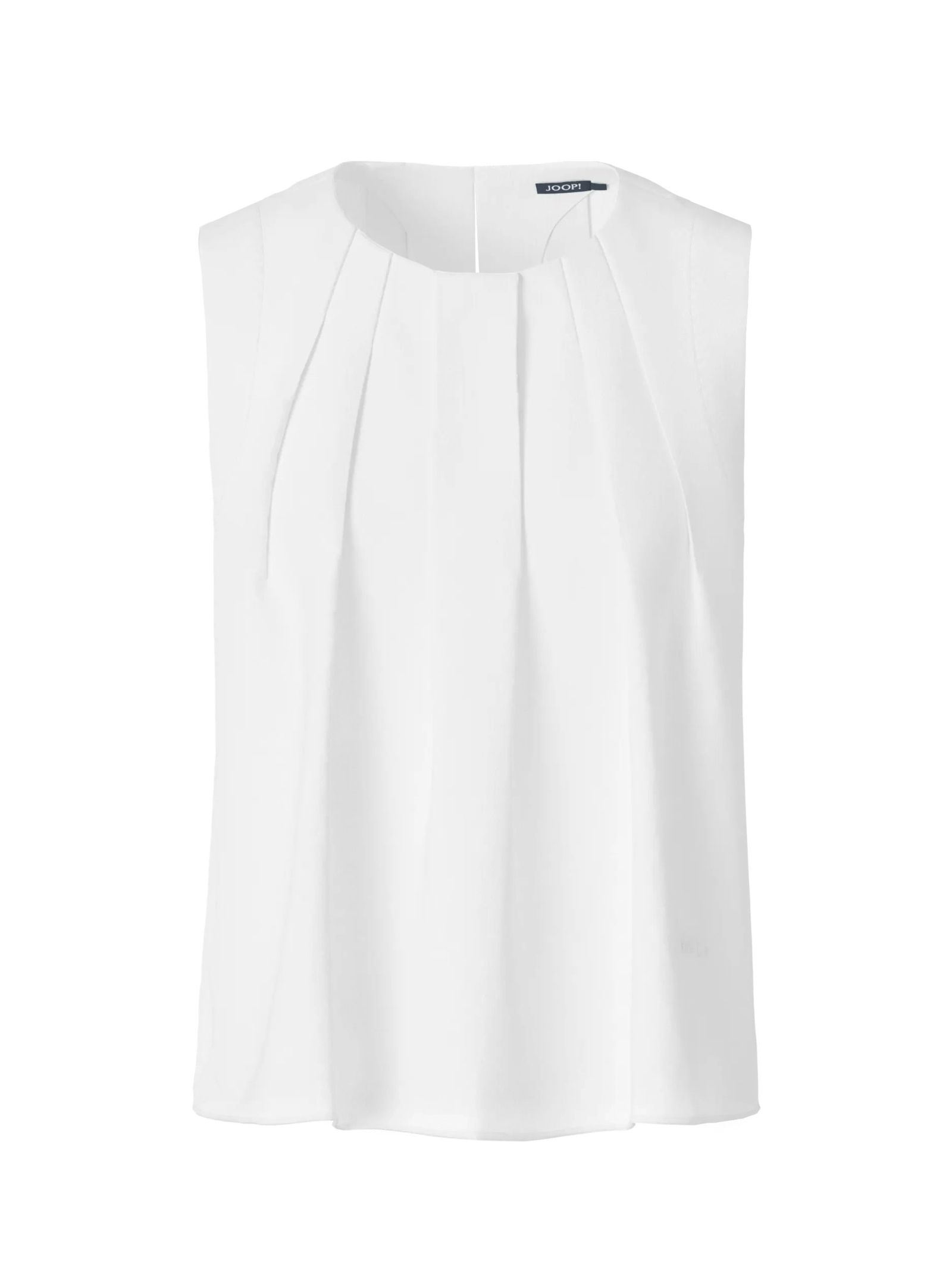 Raffinierte Leichtigkeit: Das ärmellose Blusentop mit strukturiertem Crewneck und seitlich geschlitztem Saum verleiht Ihrem Outfit eine luftige Eleganz. Der cleane Look wird durch den Rundhalsausschnitt und den praktischen Verschluss mit Schlaufe und Knopf perfektioniert. Kombinieren Sie es vielseitig für einen stilvollen Business-Look oder einen lässigen Freizeitauftritt.