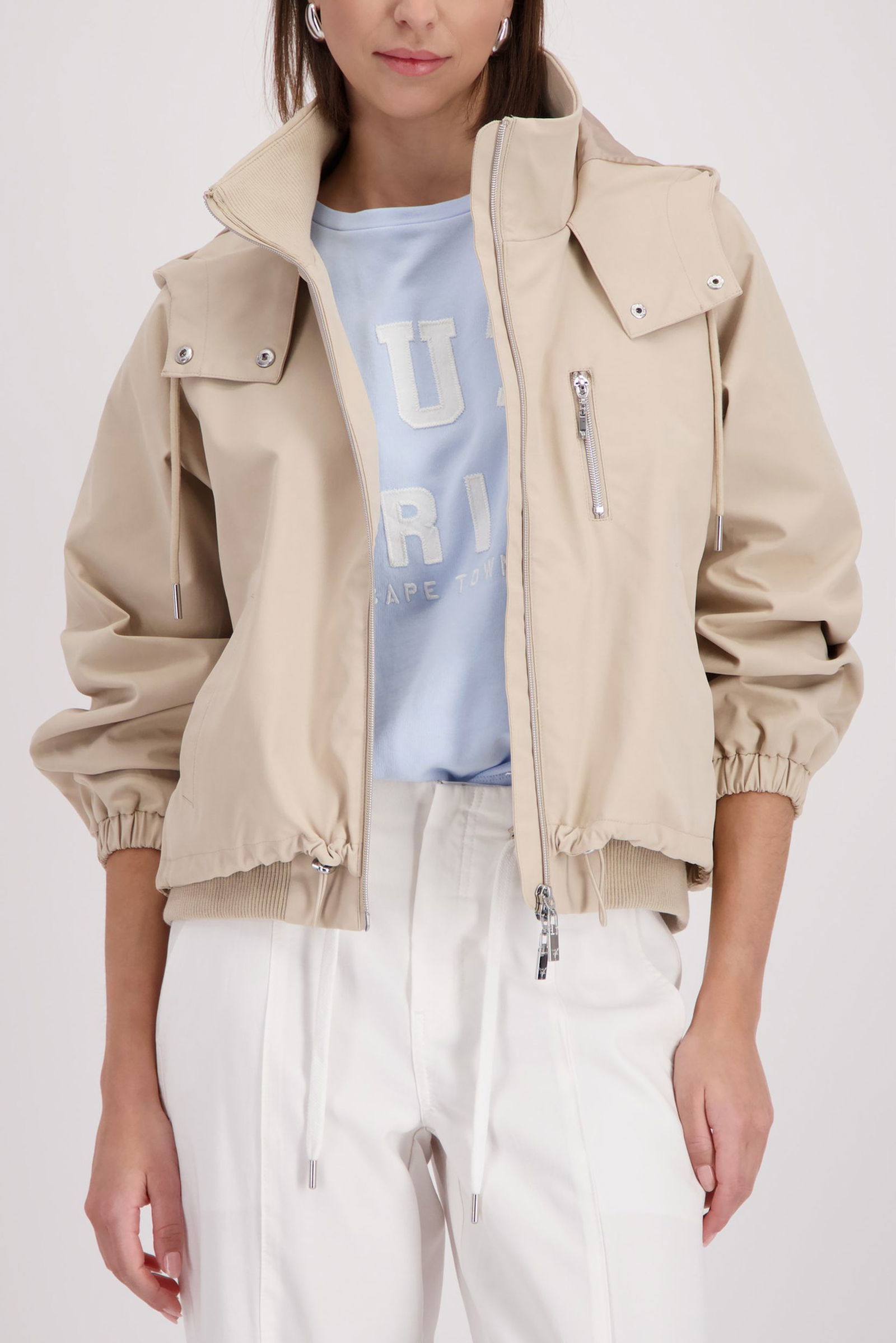 * Passform: Lässig * Gesamtlänge: 60 cm * Ärmellänge: Langarm * Kapuze: Abnehmbar, mit Kontrastfarbe innen * Kragen: Stehkragen * Tasche: Reißverschluss, Paspeltasche * Verschluss: Reißverschluss * Muster: Uni * Futter: 100% Polyester * Besatz: 100% Polyester | Besatz2: 100% Polyester * Kragenmaterial: 45% Viskose, 37% Polyester, 10% Modal, 8% Elasthan
