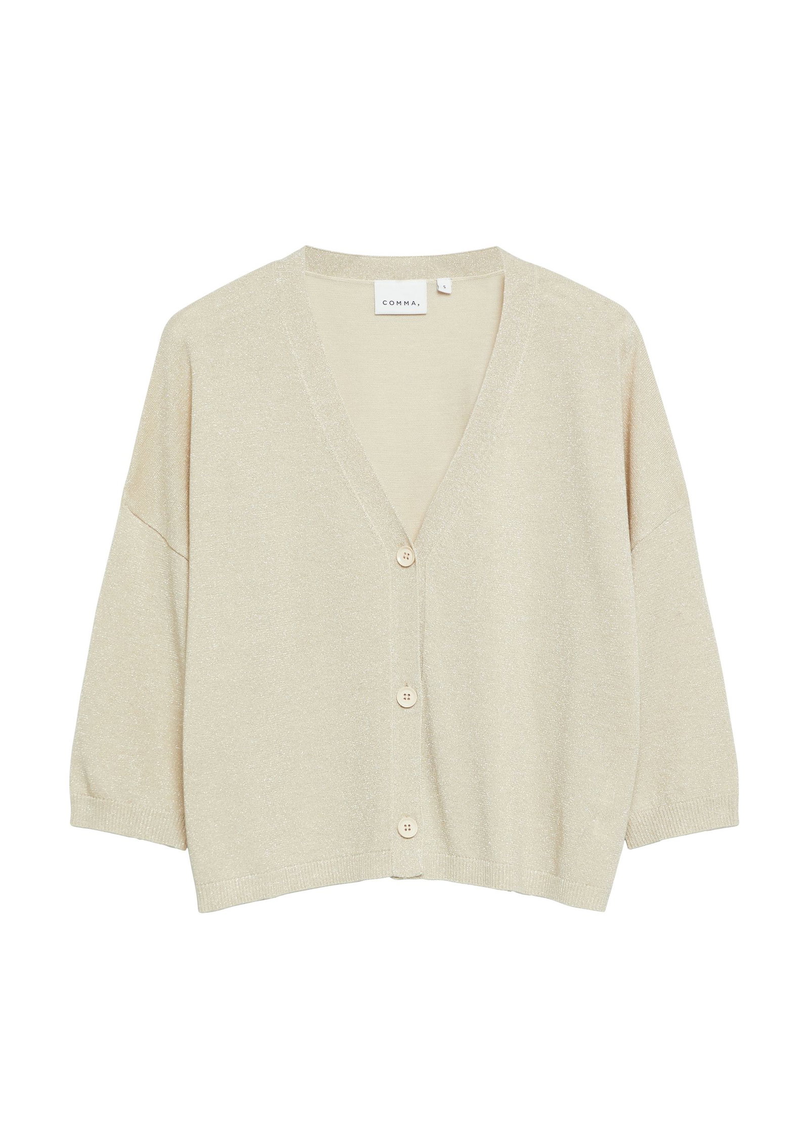 Klare Linien und ein unkomplizierter Look machen diesen Cardigan zu einem vielseitigen Strick-Essential. Der V-Ausschnitt wirkt schmeichelhaft und offen, während die durchgehende Knopfleiste flexible Stylingmöglichkeiten bietet. Die 3/4-Ärmel unterstreichen die moderne, leichte Ausstrahlung und machen das Modell ideal für Übergangszeiten. Gefertigt aus reiner Baumwolle überzeugt der Cardigan mit einem angenehmen Griff und einem natürlichen Tragekomfort. Länge ca. 58 cm.
