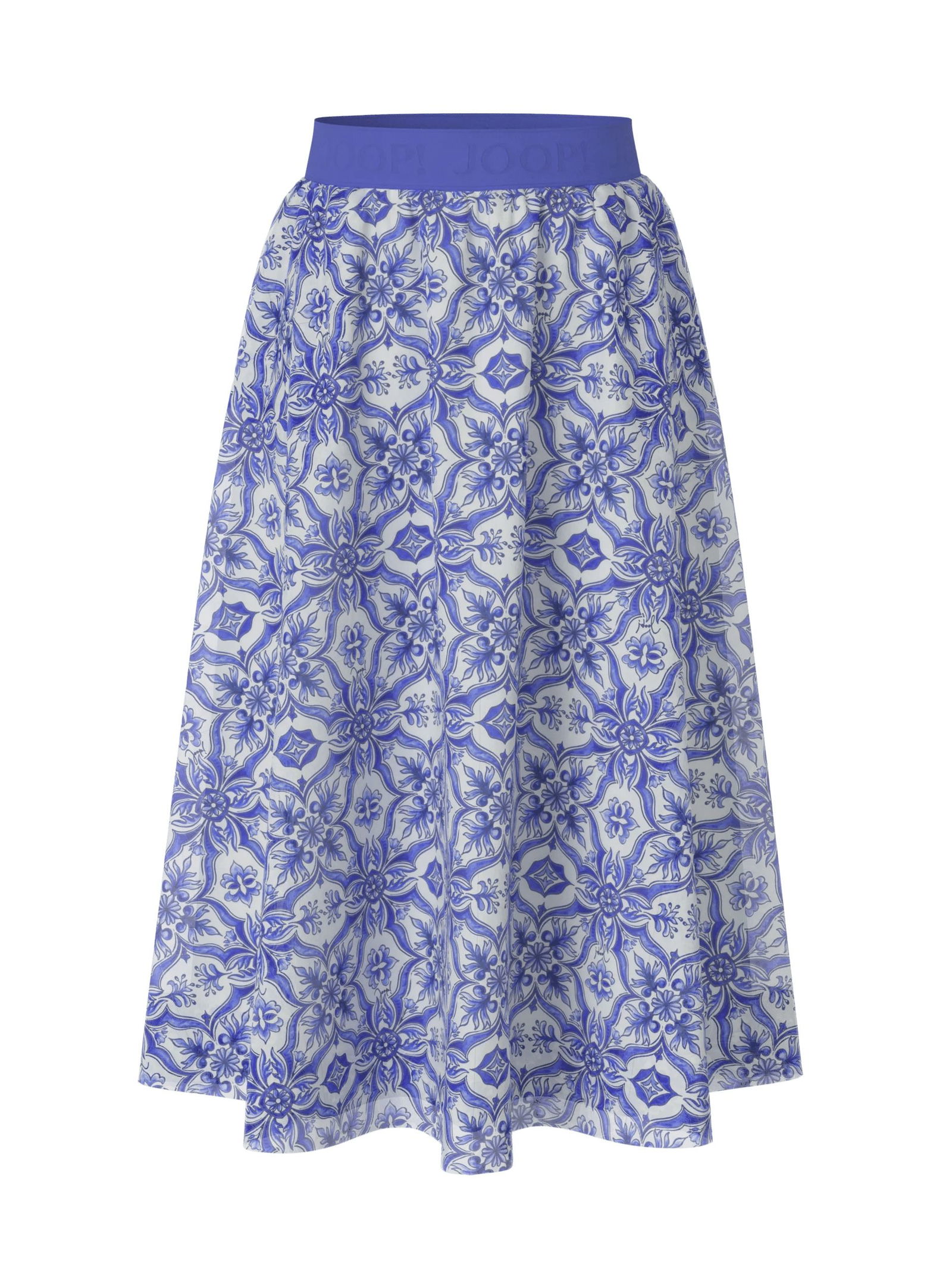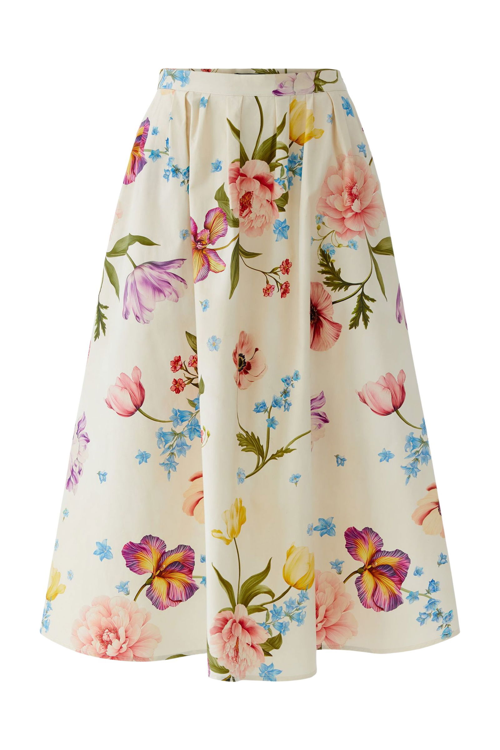 Reine Baumwolle, Alloverdruck A-Shape geschnitten, Midi-Länge Fester Bund mit nahtfeinem Reißverschluss in der Seitennaht Falten vorne und hinten figurschmeichelnd eingelegt Seitliche Eingrifftaschen * Länge bei Größe 36: 84cm