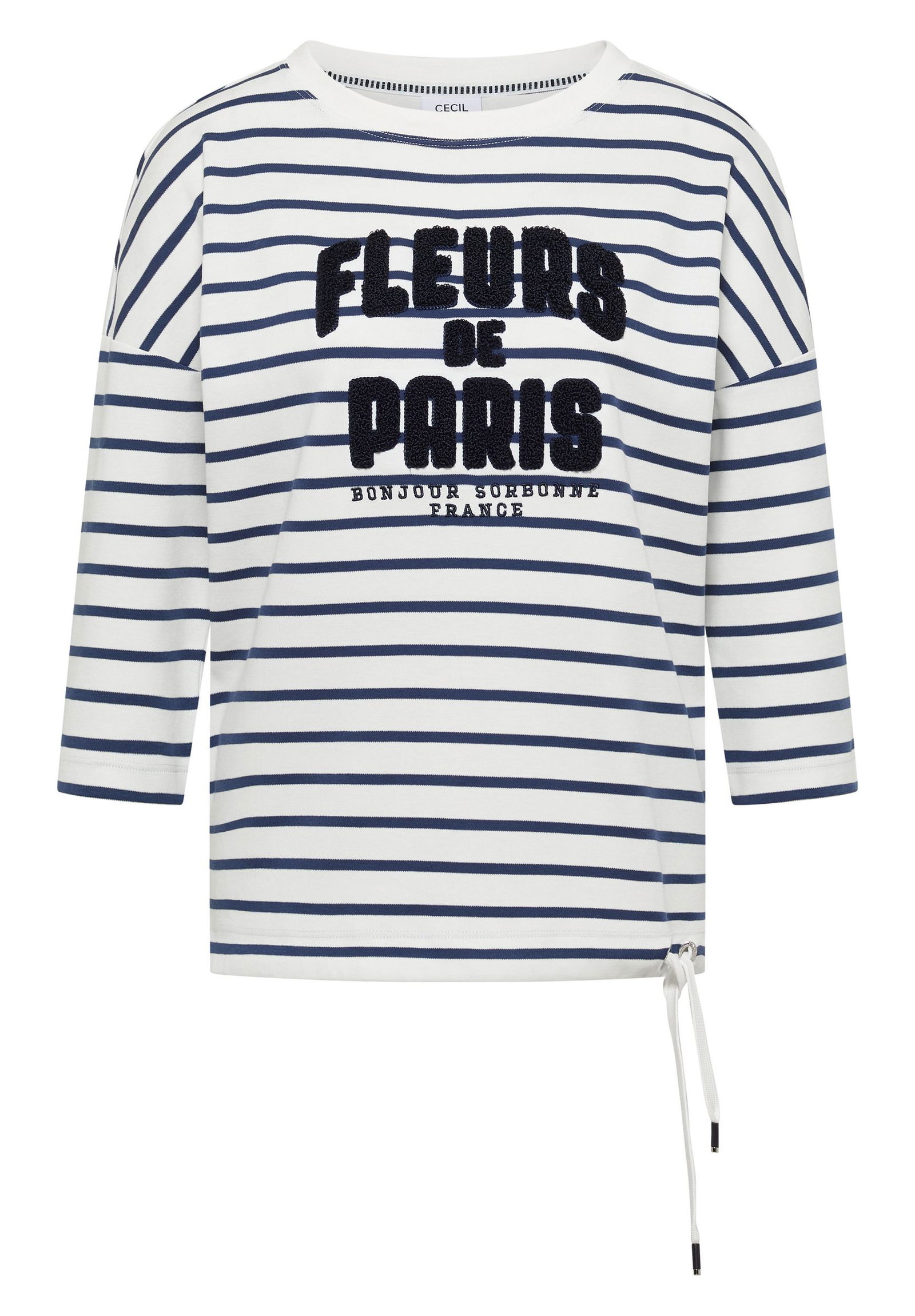Dieses Streifen-Shirt von CECIL für Damen überzeugt mit lässigem, sportivem Stil. Der U-Boot-Ausschnitt und die 3/4-Ärmel sorgen für eine entspannte Optik. Der Tunnelzug am Saum setzt ein sportives Detail und ermöglicht eine individuelle Passform. Reine Baumwolle macht das Shirt angenehm zu tragen. Baumwollshirt Casual U-Boot-Ausschnitt 3/4-Arm Lässig und sportiv Material: 100% Baumwolle