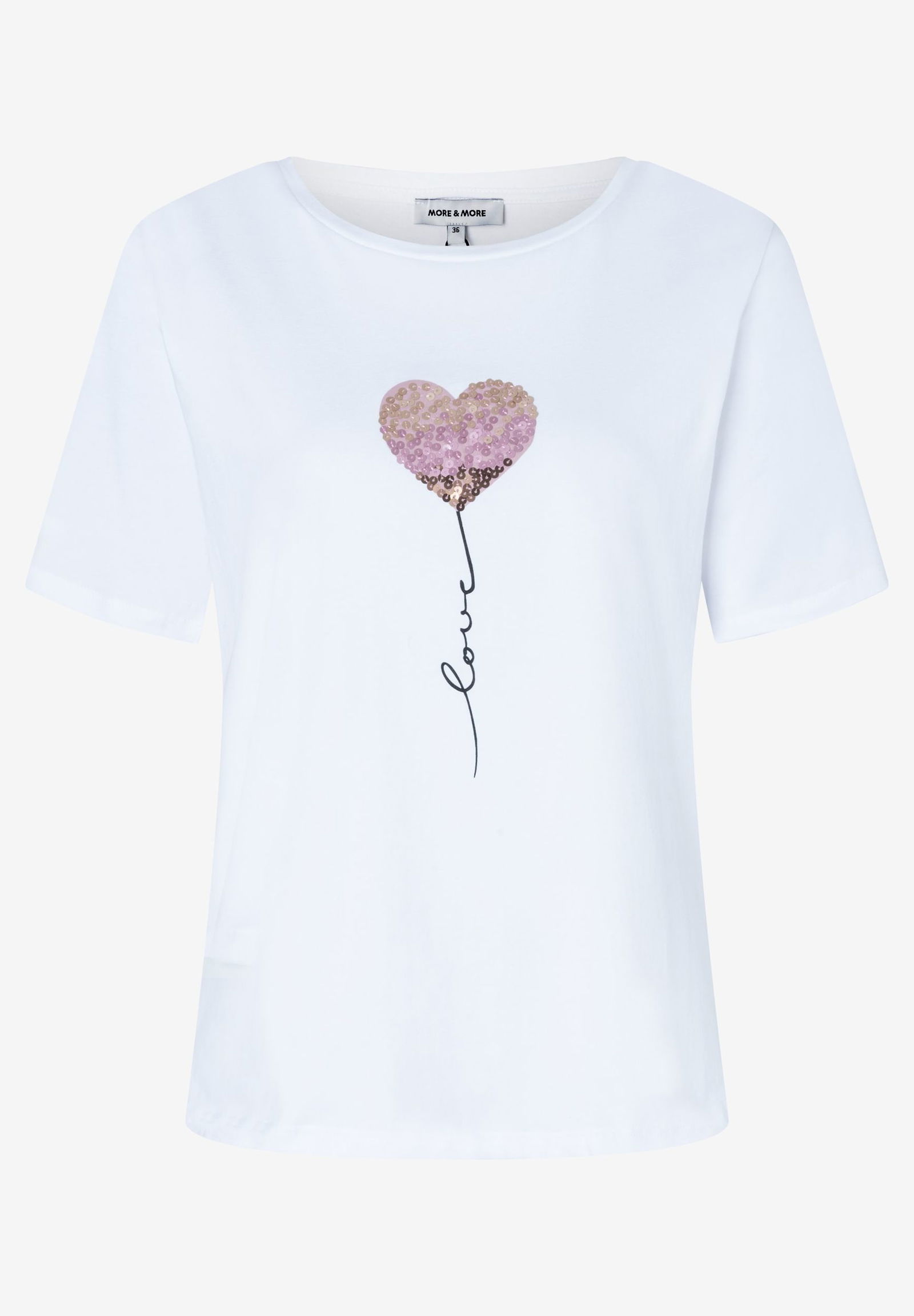Das moderne Kurzarmshirt von MORE & MORE verzaubert mit süßer Pailletten-Applikation auf der Front und bietet unzählige Stylingmöglichkeiten.