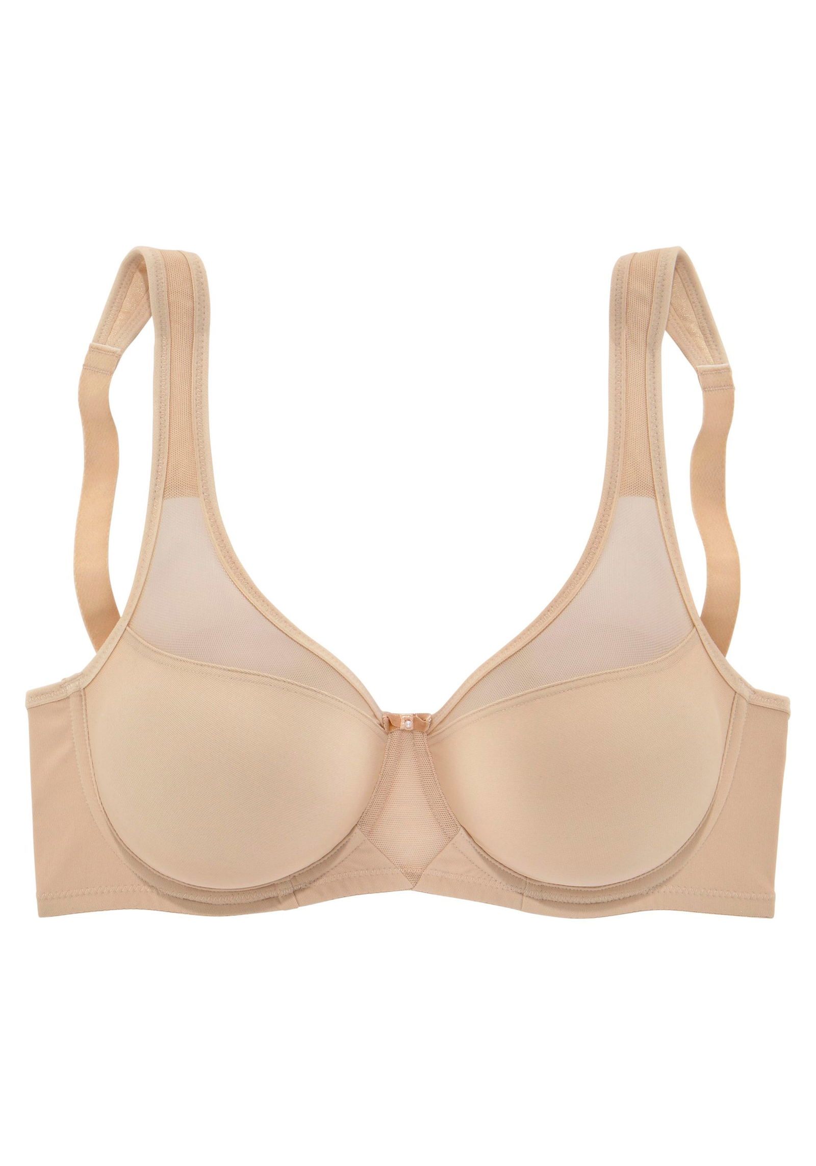 NUANCE Nuance: Minimizer-BH mit Bügel. Leicht transparente Netzeinsätze im Obercup. Nahtlos vorgeformte Cups ohne Wattierung. Durch die besondere Schnittführung wird die Büste optisch verkleinert. Träger und Rückenverschluss verstellbar. Aus 79% Polyamid, 15% Polyester, 6% Elasthan