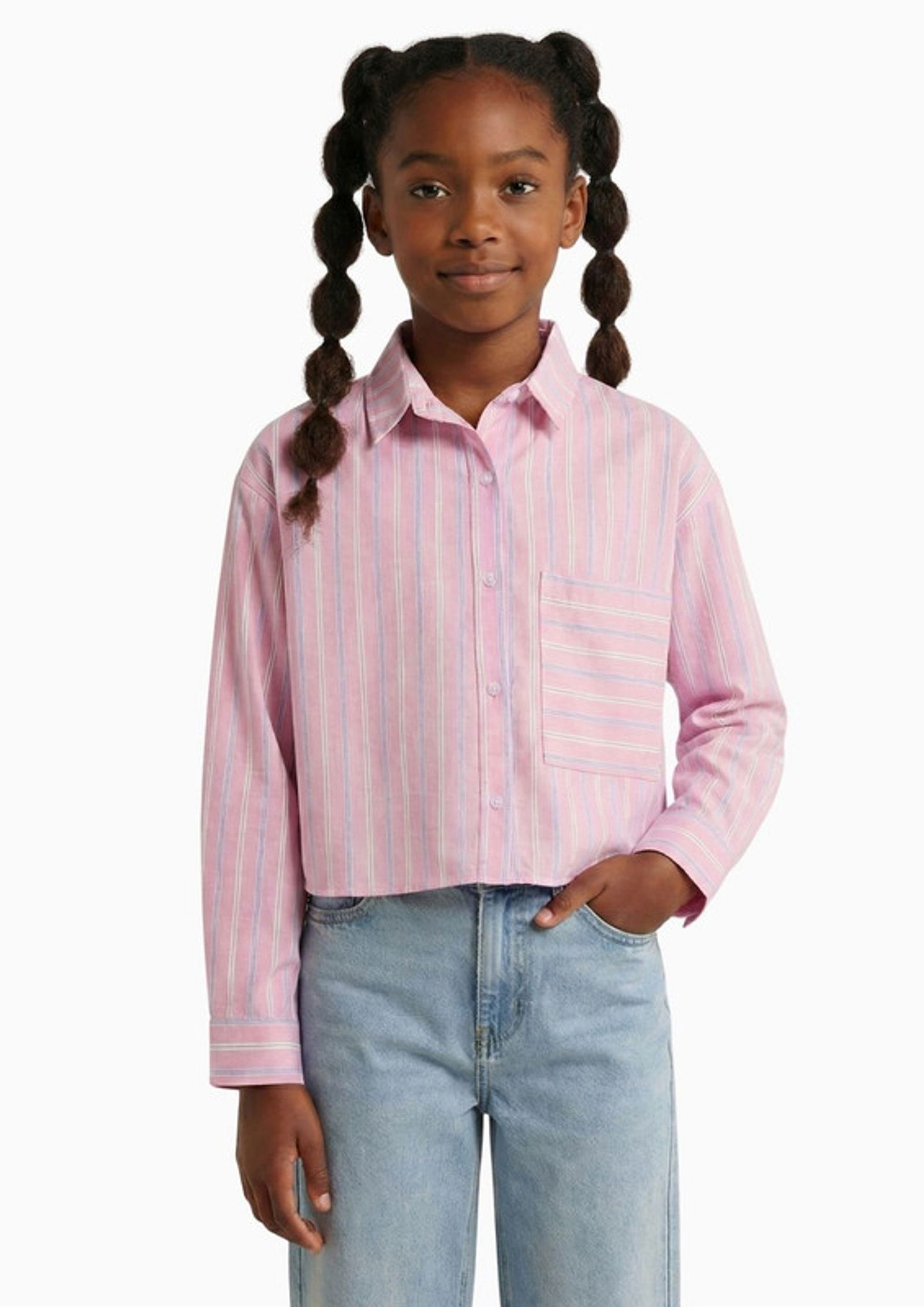 Mit dieser stilvollen Bluse von Blue Effect setzen Sie auf einen zeitlosen Look mit modischer Note. Das feine Streifenmuster verleiht dem Modell eine frische, moderne Ausstrahlung und macht es zu einem vielseitigen Begleiter für unterschiedliche Anlässe. Der klassische Hemdkragen sowie die durchgehende Knopfleiste unterstreichen den gepflegten Charakter der Bluse. Eine aufgesetzte Brusttasche ergänzt das Design dezent und sorgt für einen lässigen Akzent. Die angenehme Passform bietet hohen Tragekomfort und ausreichend Bewegungsfreiheit ideal für Schule, Freizeit oder besondere Gelegenheiten. Ob kombiniert mit Jeans für einen entspannten Alltagslook oder etwas schicker mit Rock oder Stoffhose diese Bluse lässt sich vielseitig stylen und überzeugt durch ihre modische Vielseitigkeit.