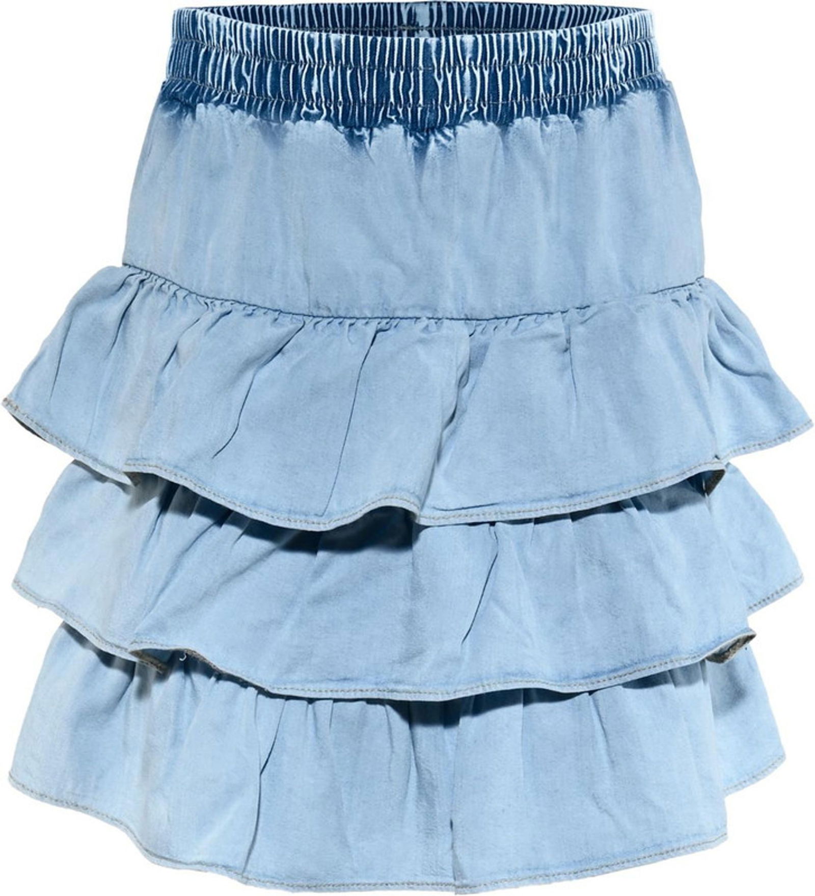 Mit diesem Rock von Blue Effect setzen Sie auf einen trendigen Look mit femininer Leichtigkeit. Die weiche Denim-Optik verleiht dem Modell einen lässigen Charakter, während die mehrlagigen Volants für eine verspielte und schwungvolle Silhouette sorgen. Der elastische Bund bietet einen angenehmen Tragekomfort und sorgt für einen optimalen Sitz, ohne einzuengen. Durch die lockere, fließende Form eignet sich der Rock ideal für warme Tage und bietet viel Bewegungsfreiheit perfekt für Schule, Freizeit oder besondere Anlässe. Kombinieren Sie den Rock sportiv mit T-Shirt und Sneakern oder etwas schicker mit Bluse und Sandalen dieses Modell lässt sich vielseitig stylen und wird schnell zum Lieblingsstück im Kleiderschrank. Mit Blue Effect entscheiden Sie sich für modische Designs, die Komfort und Trendbewusstsein harmonisch verbinden.