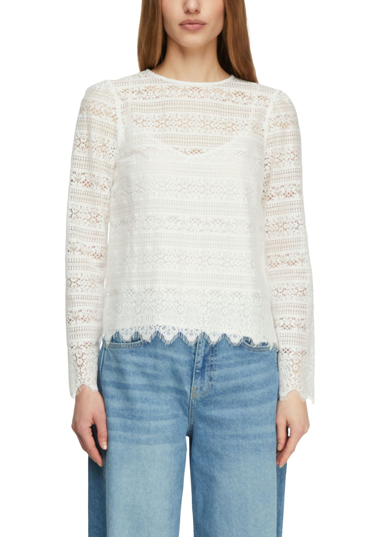 Feminine Baumwollspitzenbluse mit Raffdetail an der Schulter und herausnehmbarem Futter