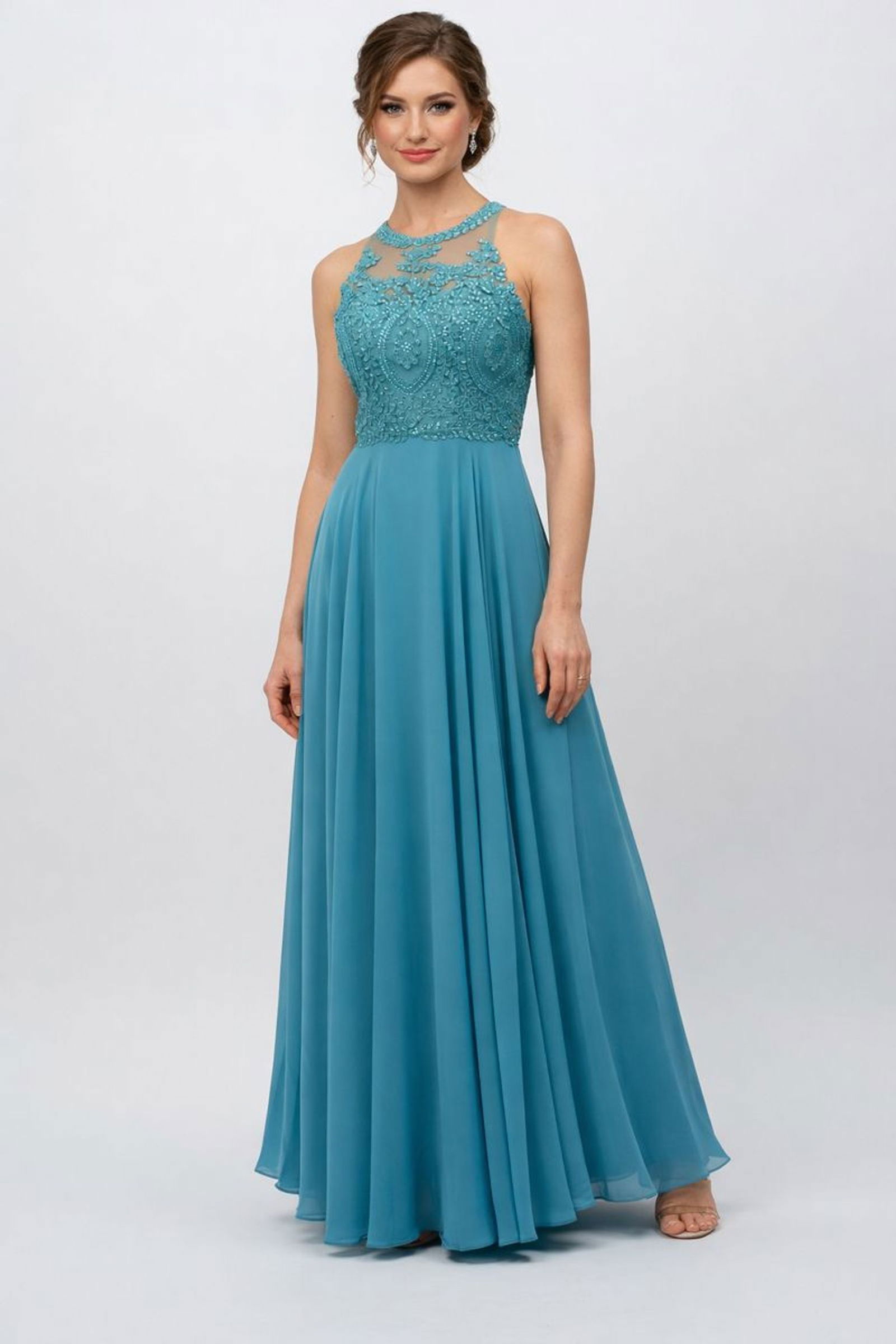 Dieses elegante Abendkleid von Mascara London begeistert durch seine zeitlose Schönheit und den frischen Farbton Dew / Türkisblau. Das bodenlange Design vereint feminine Eleganz mit aufwendiger Verarbeitung und ist ideal für festliche Anlässe.