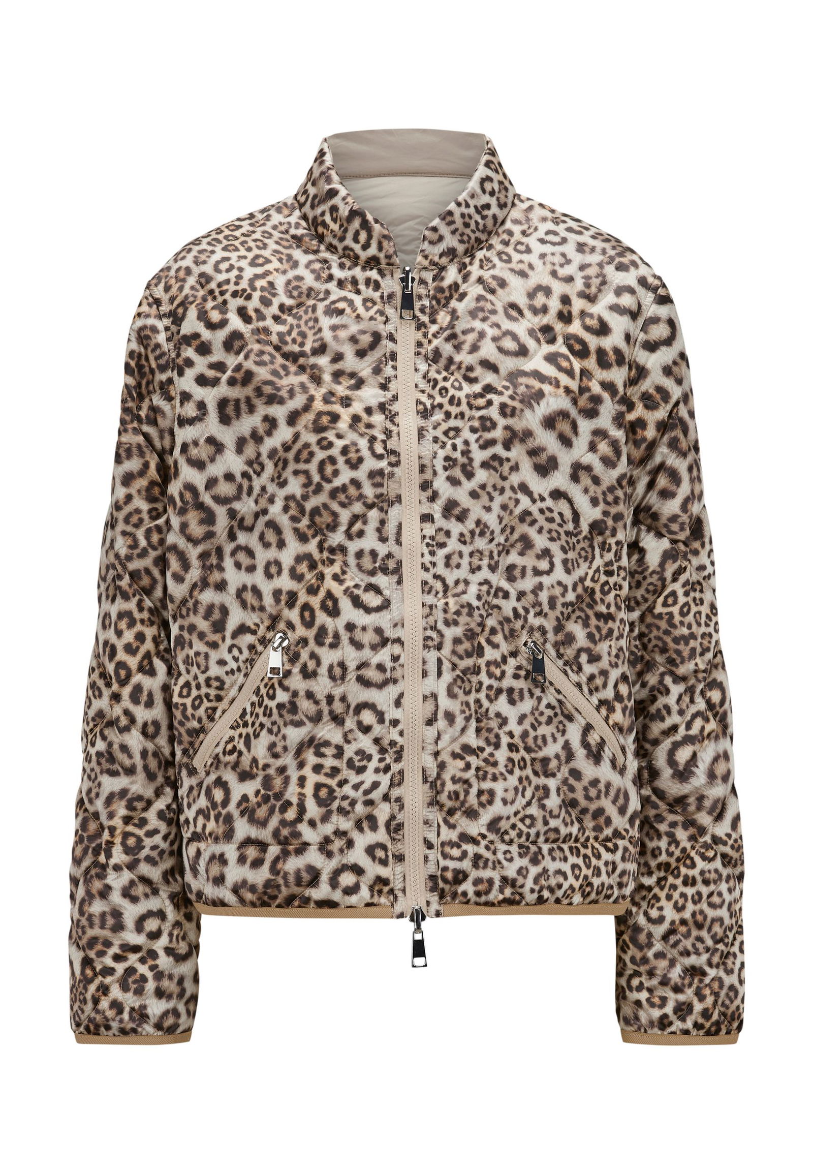 • Leichte gesteppte Wendejacke: eine Seite uni, eine Seite mit trendigem Animal Print • Gerade Passform mit zu den Seiten gerundetem Saum • Wellenstepp mit leichter 80g Wattierung • Je nach Uni-Farbe mit Leoprint oder Snakeprint auf der anderen Seite • schmaler gerundeter Stehkragen • 2-Wege Kunststoff-Reißverschluss in der vorderen Mitte • Printseite mit Reißverschlusstaschen, Uniseite mit aufgesetzten Taschen aus Baumwollmix-Ware • Saum und Ärmelabschluss mit elastischem Fischgrat-Band eingefasst • neues Silikon-Logo-Badge Ton in Ton