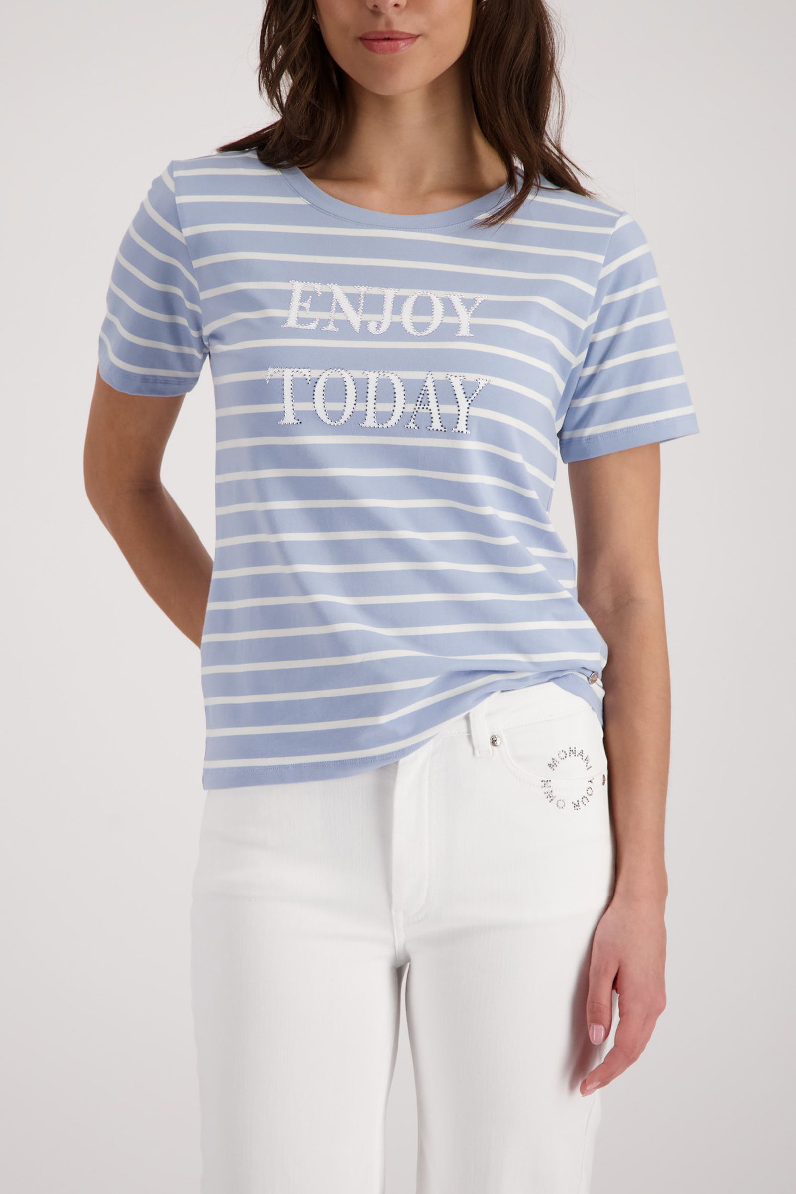 Stilvolles T-Shirt aus hochwertiger Baumwolle mit weicher Haptik, Streifen und funkelnden Strass-Details. Enjoy Today!