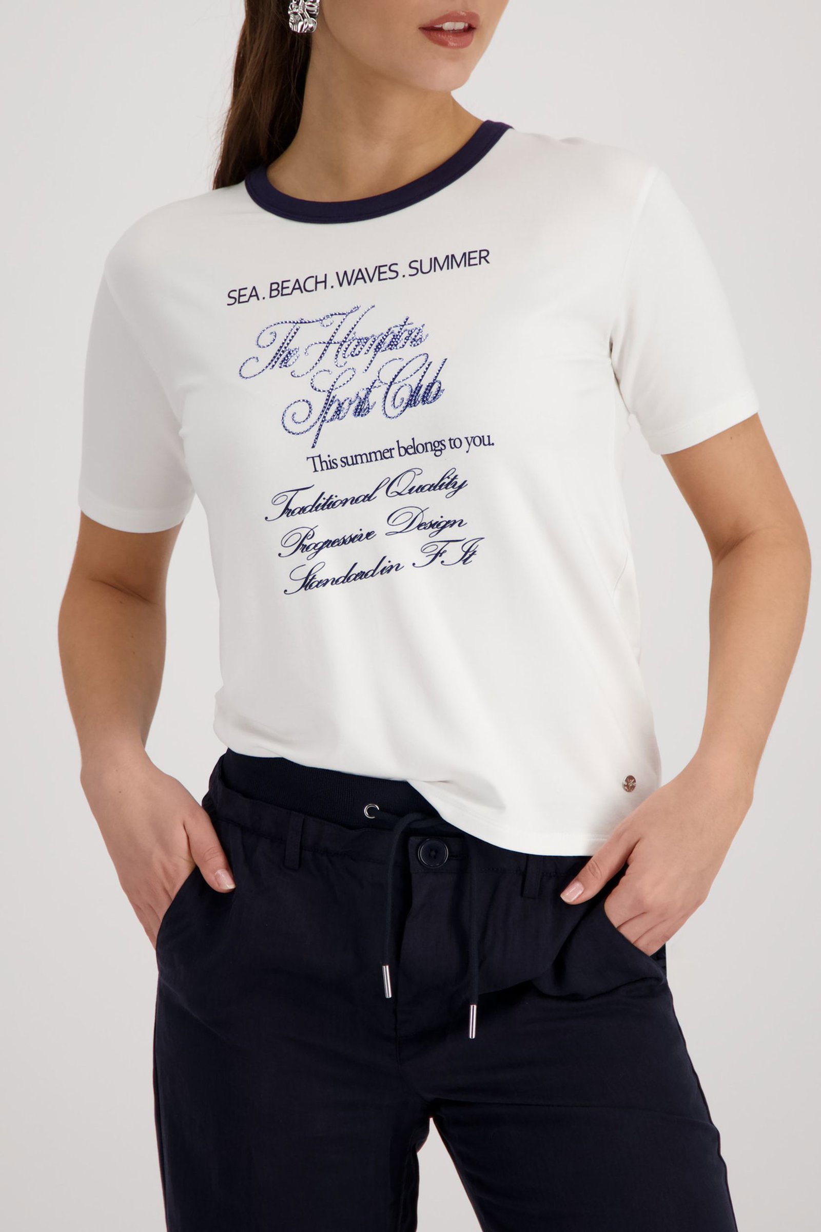 Stilvolles T-Shirt aus einer hochwertigen Baumwolle mit Modal, Flammgarn-Struktur und funkelnden Strasssteinen. Perfekt für jeden Tag.