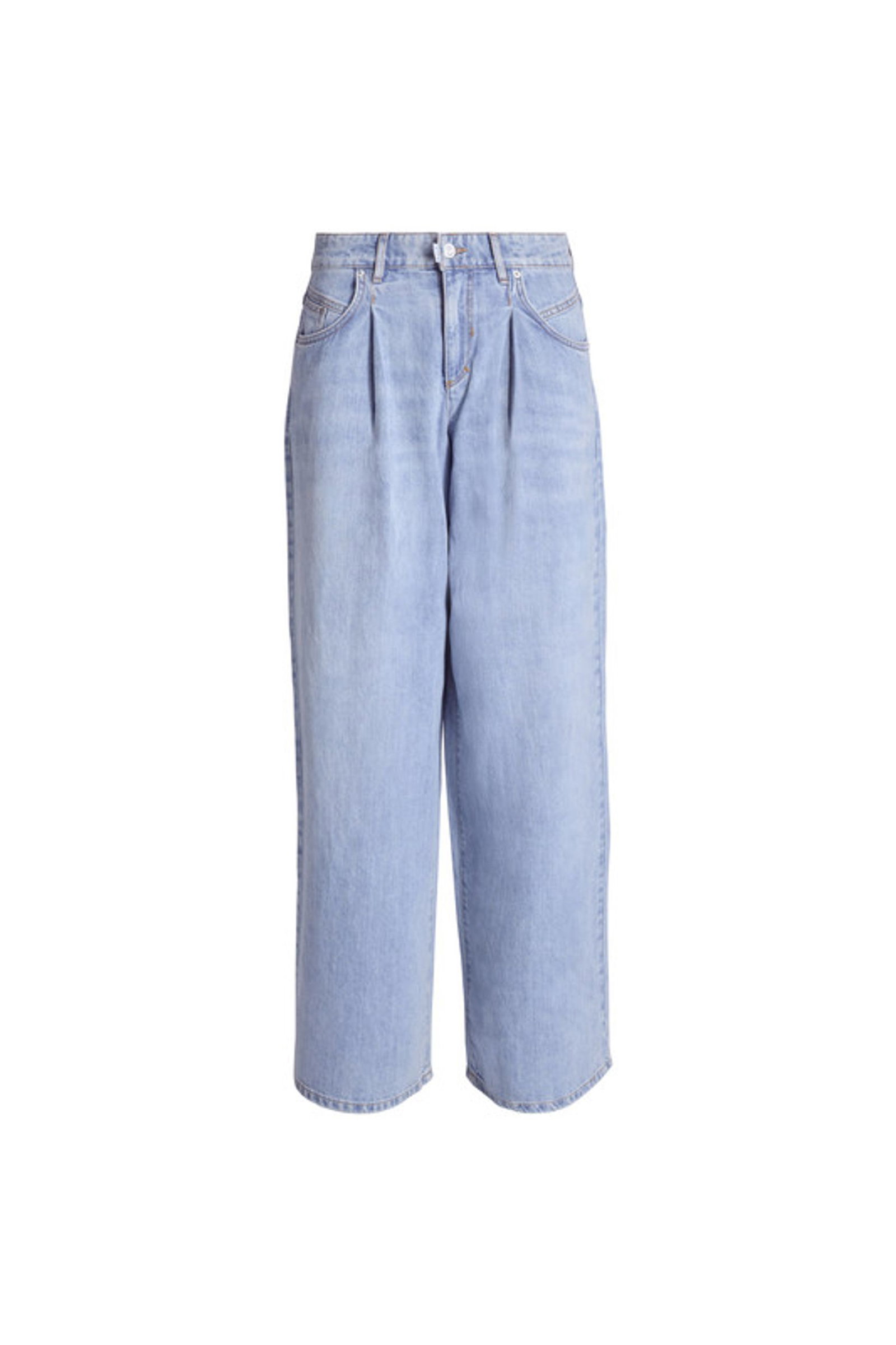 24_THE MINI G ist eine hochwertige Jeans aus Organic Fluent Light Denim von Candiani mit dunkelblauer Waschung und leichtem Abrieb. Ihre gerade, weite Schnittform ist besonders bequem und schmeichelt jeder Figur. Das Design wird durch eingearbeitete Bundfalten vorne und einem kleinen Gürtel mit Pocket ergänzt. Passform