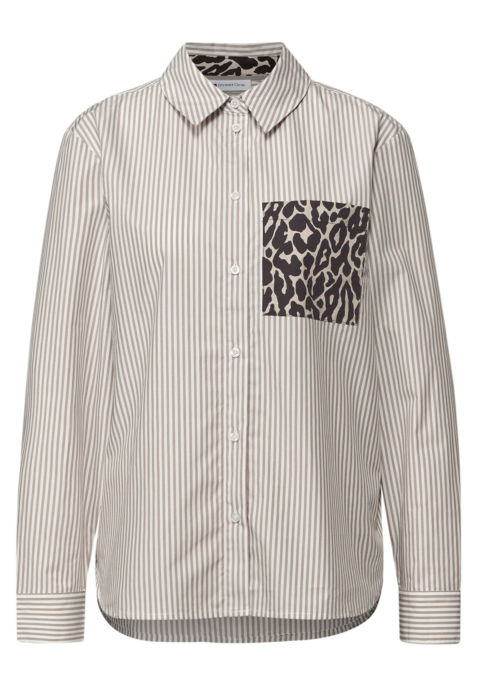 Die gestreifte Hemdbluse von Street One für Damen überzeugt mit klassischen Linien und einem modernen Twist. Der Leo-Print an der Brusttasche setzt einen spannenden Akzent, während die reine Baumwolle für angenehmen Tragekomfort sorgt. Ein stilvoller Begleiter für Alltag und Büro. Baumwollbluse Casual Hemdkragen Langarm Modisch Material: 100% Baumwolle