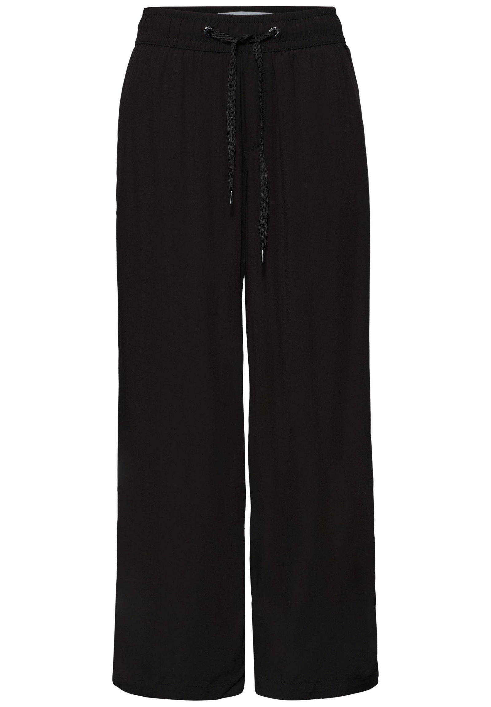 Die Wide Leg Hose im Style Emee von Street One für Damen überzeugt mit angenehm weicher Viskose und hohem Tragekomfort. Wide Legs und Loose Fit sorgen für eine besonders lockere Passform, während die High Waist eine moderne Silhouette betont. Ein elastischer Bund mit Tunnelzug und seitliche Taschen unterstreichen den entspannten Look. Vielseitig kombinierbar für stilvolle Casual-Outfits. Lässige 3/4 Stoffhose für den Sommer Loose Fit Wide Legs High Waist Weiche Viskose Elastischer Bund mit Tunnelzug Seitliche Taschen Ideal für warme Tage Unifarbe Material: 100% Viskose