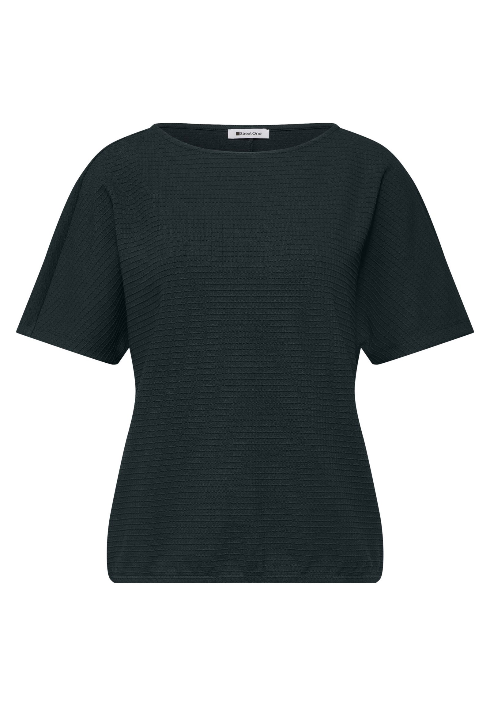 Das unifarbene Strukturshirt von Street One für Damen überzeugt mit weichem Viskosemix und hohem Tragekomfort. Der U-Boot-Ausschnitt und die kurzen Ärmel unterstreichen den entspannten Casual-Stil. Ein elastischer Saum sorgt für einen bequemen Sitz und eine lockere Passform. Perfekt für unkomplizierte Alltagslooks. Strukturshirt U-Boot-Ausschnitt Dropped Shoulders Unifarbe Bequemer Viskosemix mit Stretchanteil Vielseitiger Allrounder Elastischer Saum Material: 65% Viskose, 32% Polyester, 3% Elasthan
