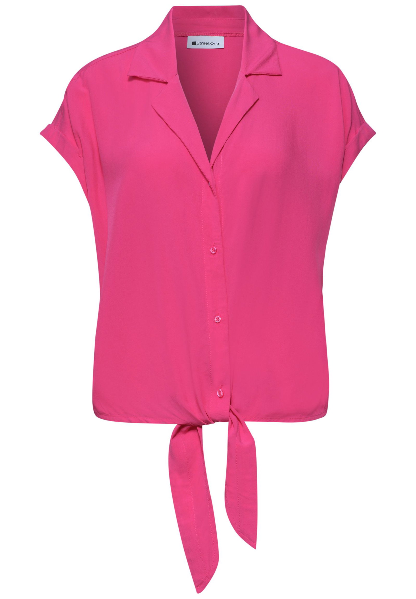 Die Bluse von Street One für Damen verbindet sportiven Stil mit modernem Design. Die weiche Viskose sorgt für ein angenehmes Tragegefühl, während Dropped Shoulders eine lockere Passform schaffen. Split Neck, Knopfleiste und das Knotendetail verleihen dem Look eine besondere Note. Ideal für Casual-Outfits mit einem trendigen Twist. Viskosebluse Casual Split Neck Dropped Shoulders Sportiv Material: 100% Viskose